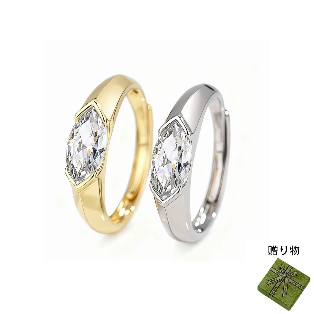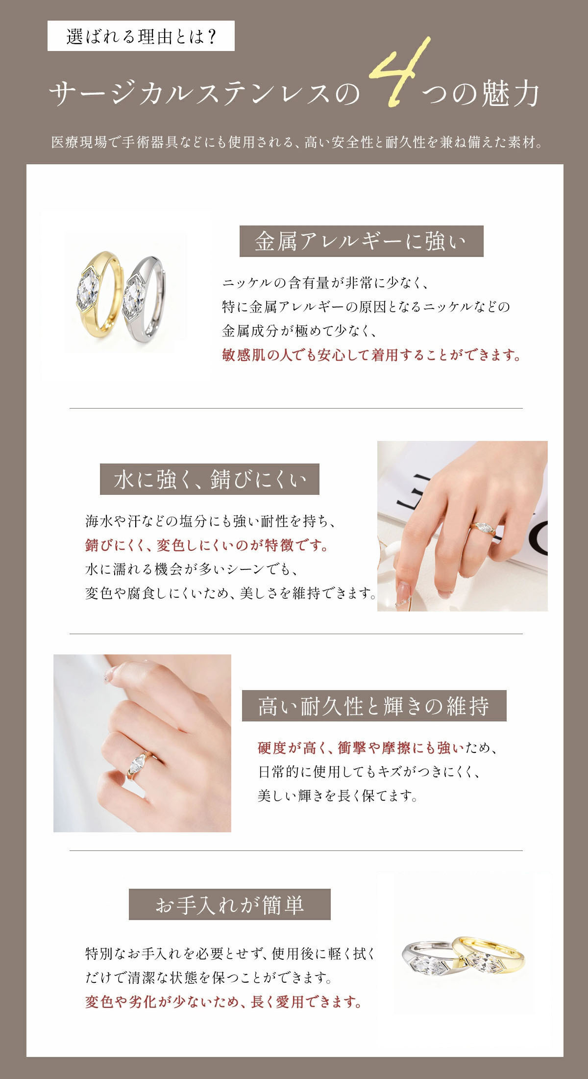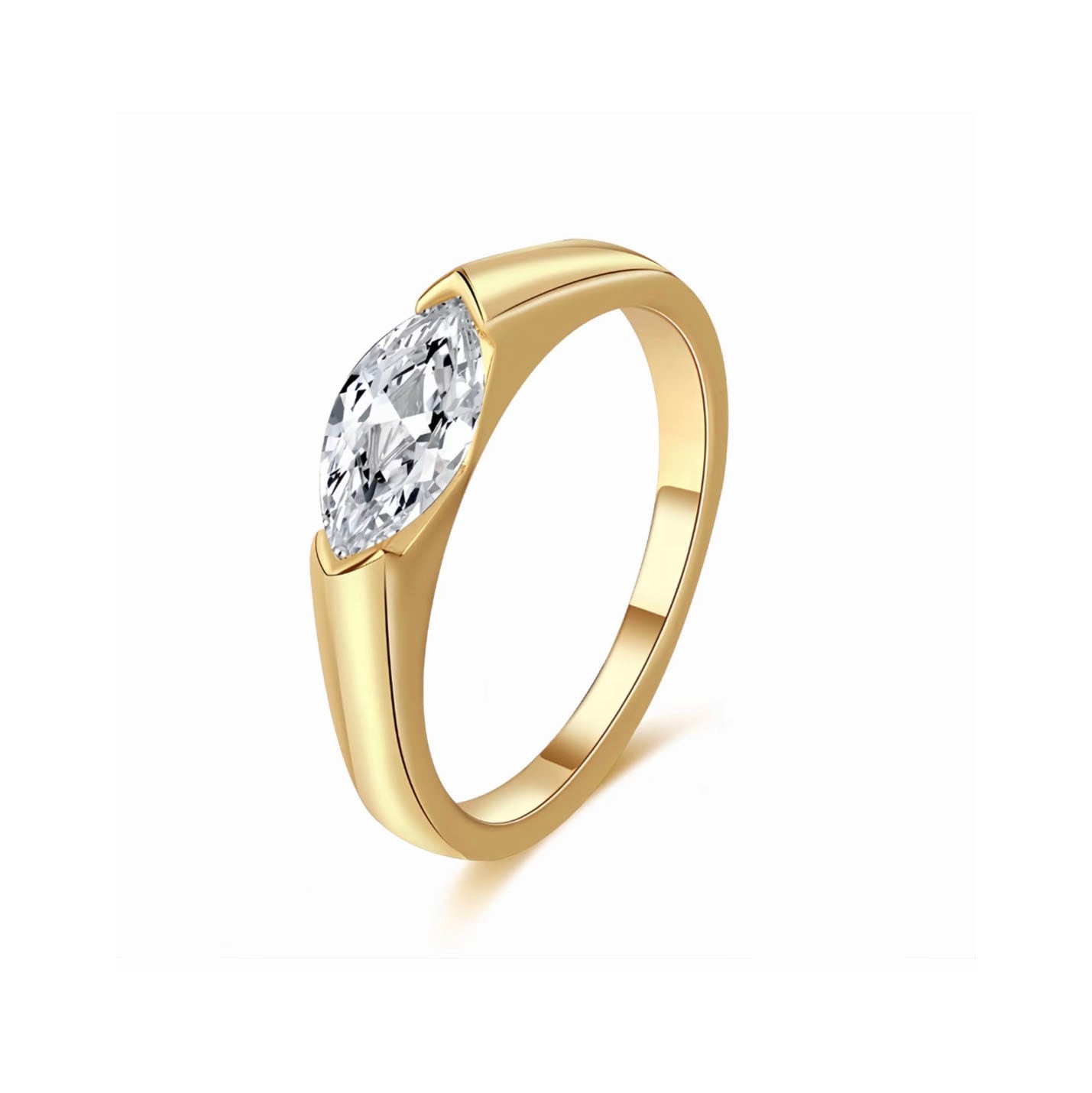 【マーキスカットダイヤモンドのデザイン】独特のマーキスカット(馬眼形)のダイヤモンドを採用しています。この形状のダイヤモンドは、流麗でスリムなラインが特徴で、視覚上に指のラインを引き延ばし、手元をよりスリムで優雅に見せ、一風変わった魅力を引き出します。