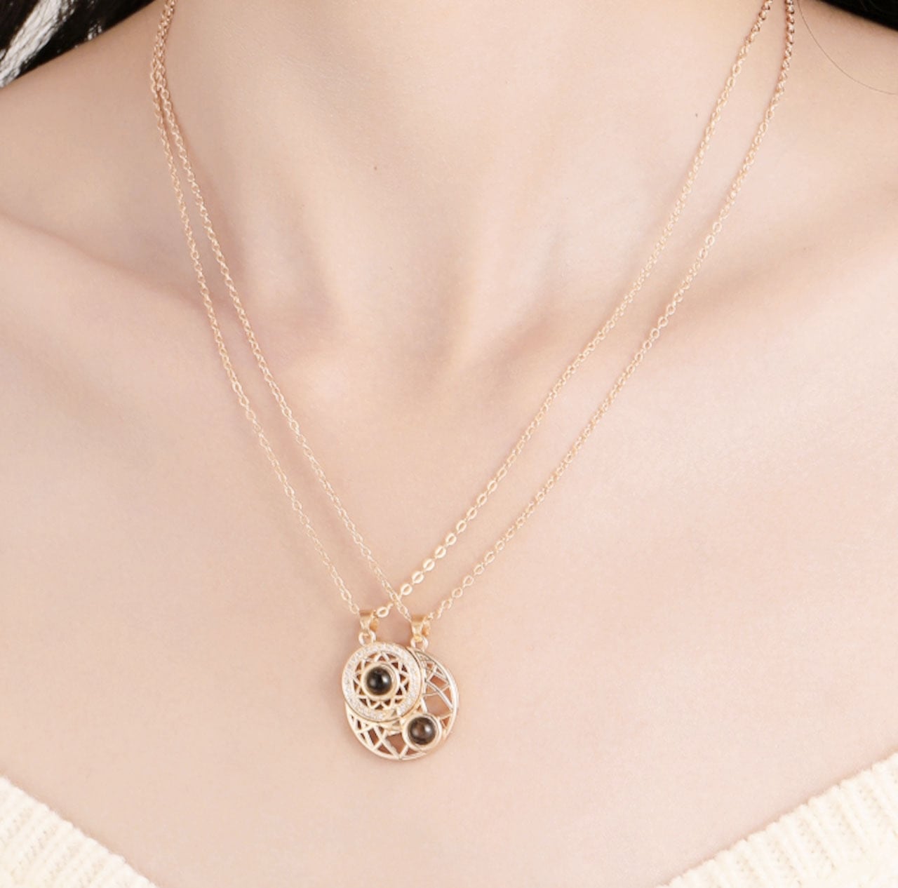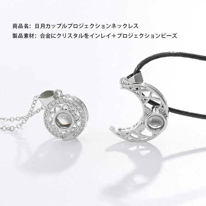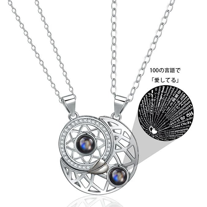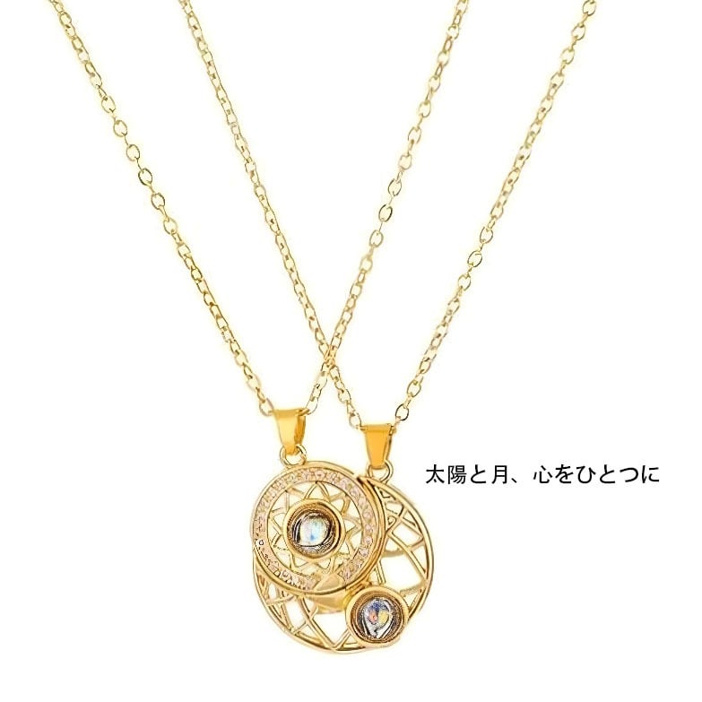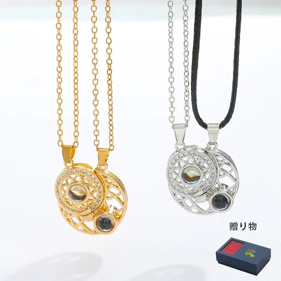 個性派 日月カップル 投影ネックレス 男女ペア 磁石吸着ペンダント クレビックチェーン
