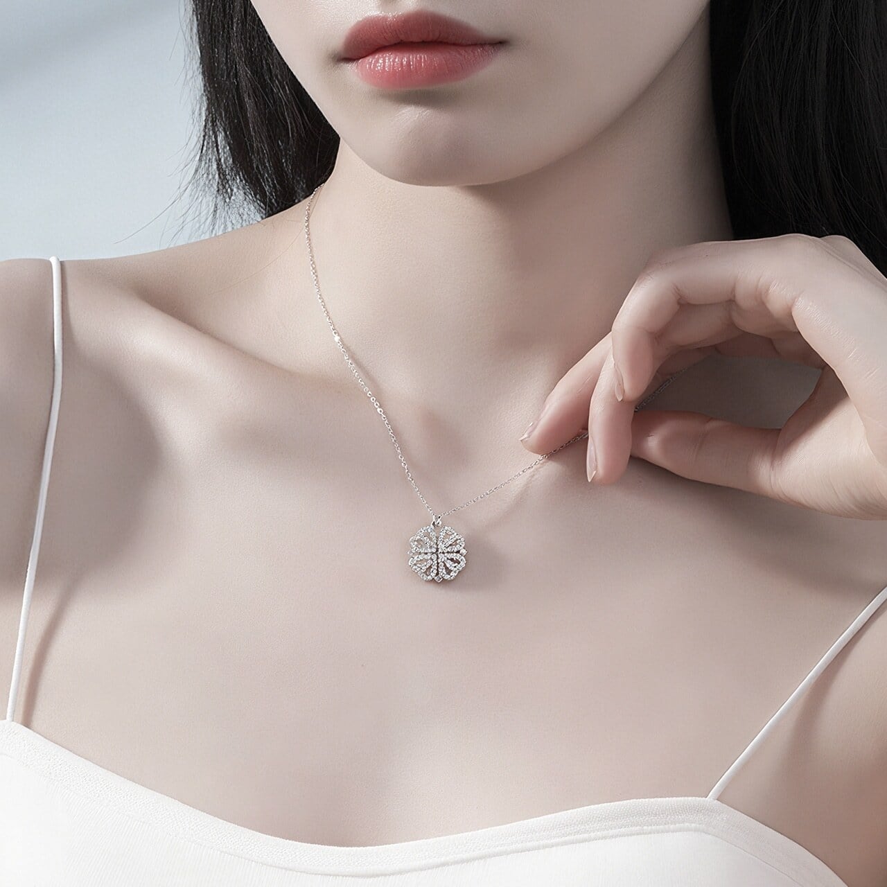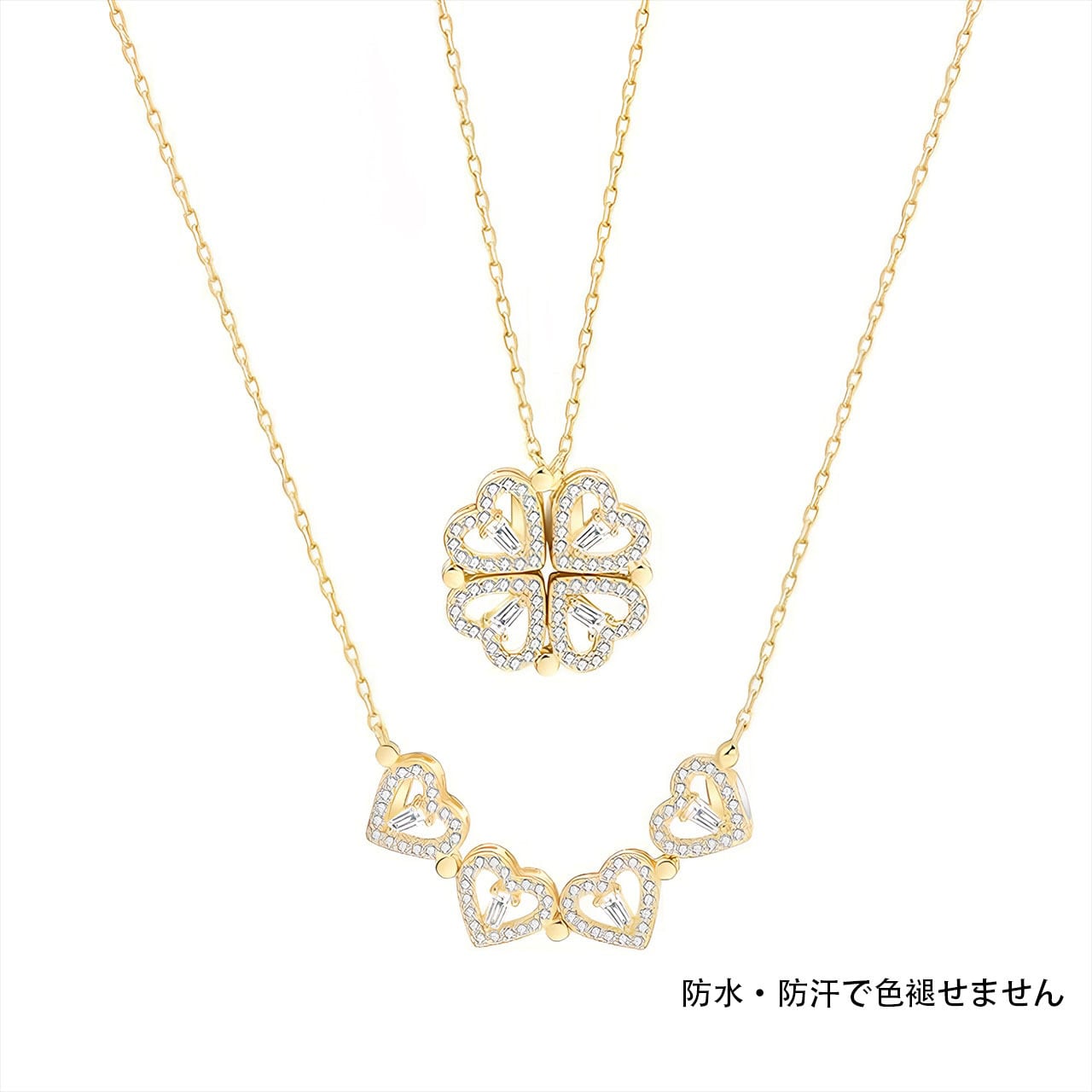 独特で優雅なデザイン-この四葉のクローバーネックレスは、優雅さと象徴性が融合した作品です。4つのハート形ペンダントのそれぞれには、ダイヤモンドに似たキラキラ輝く立方ジルコニアが装飾され、輝く豪華な外観を創り出しています。独特のデザインにより、2通りの着け方が可能-完全な四葉のクローバーとして、運を象徴するか、または単独のハート形ペンダントとして、それぞれが愛、希望、信念、健康を象徴しています。
