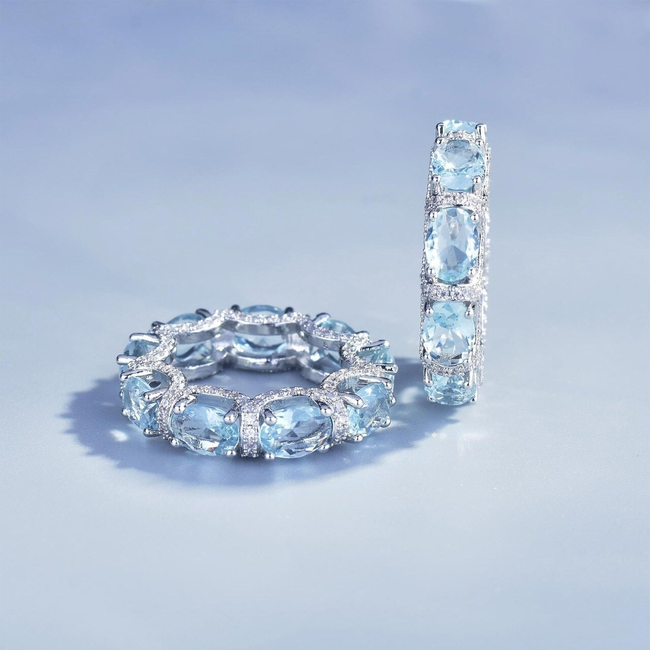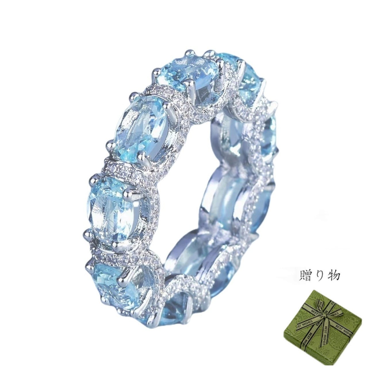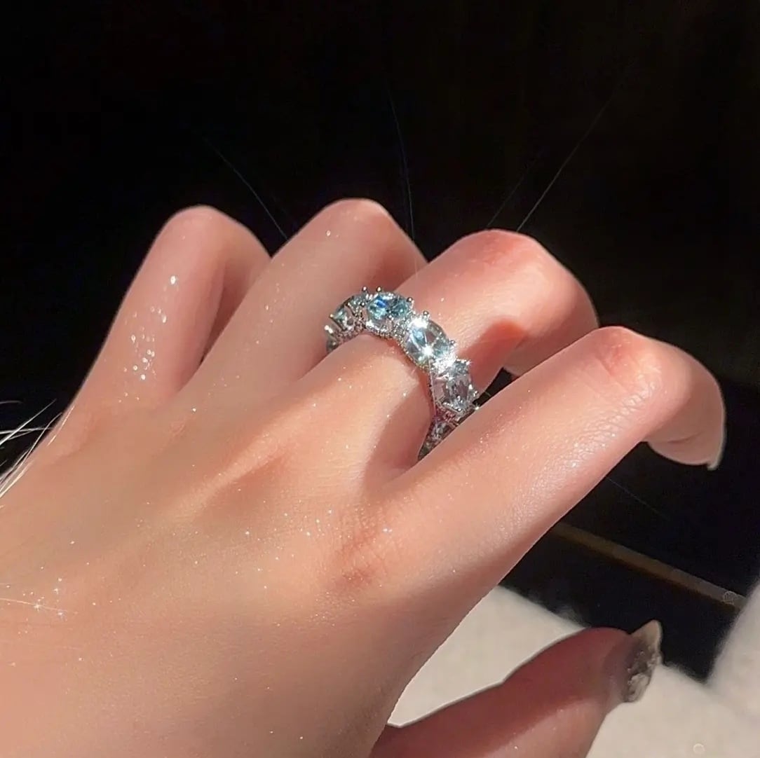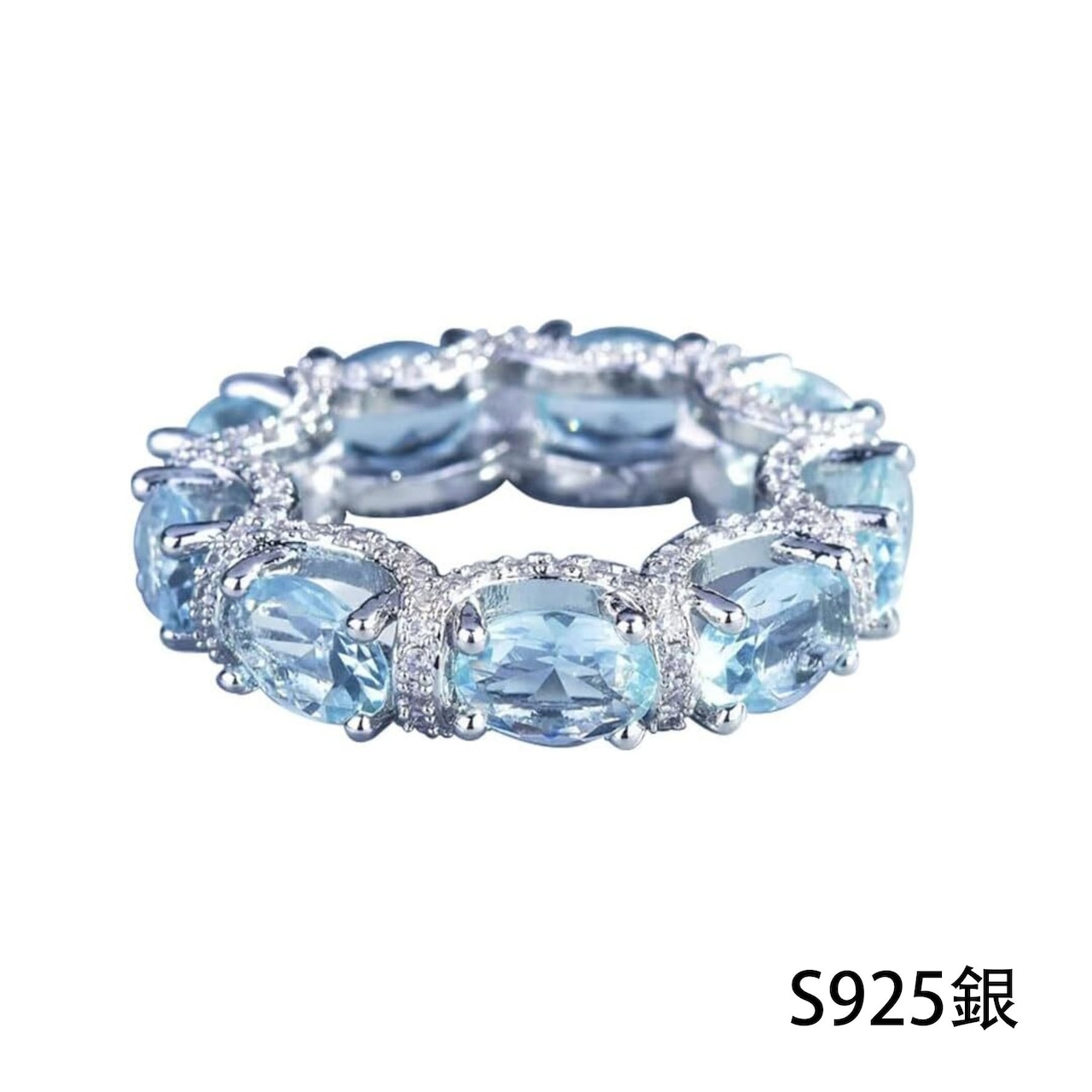 【50%OFF 割引期間限定Ⅰ 】S925純銀ダイヤ満載のアクアマリンラインリング彼女や親友への誕生日プレゼント、記念日ギフト