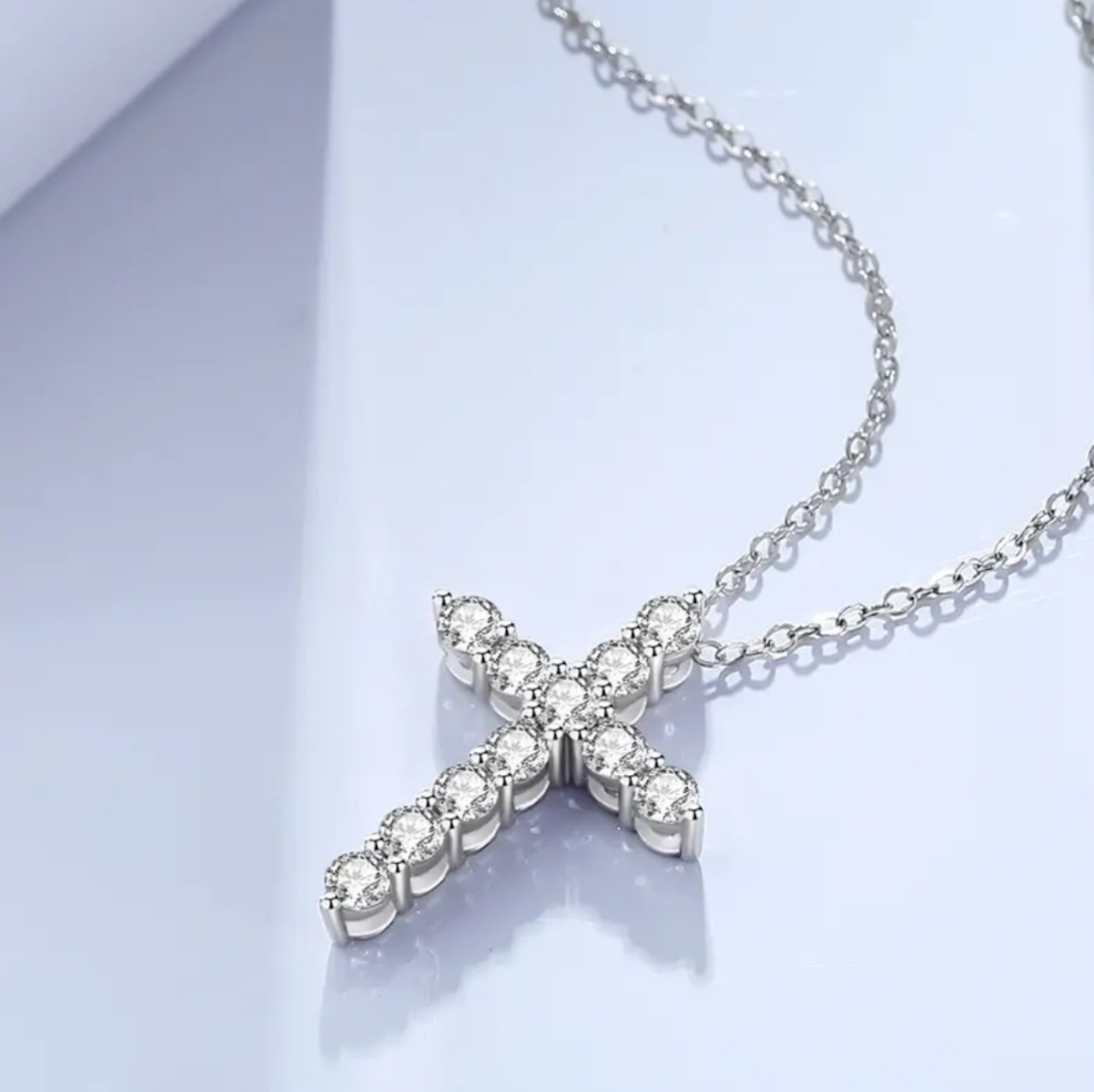 S925純銀ダイヤ十字架ネックレス彼女や親友への誕生日プレゼント、記念日ギフト