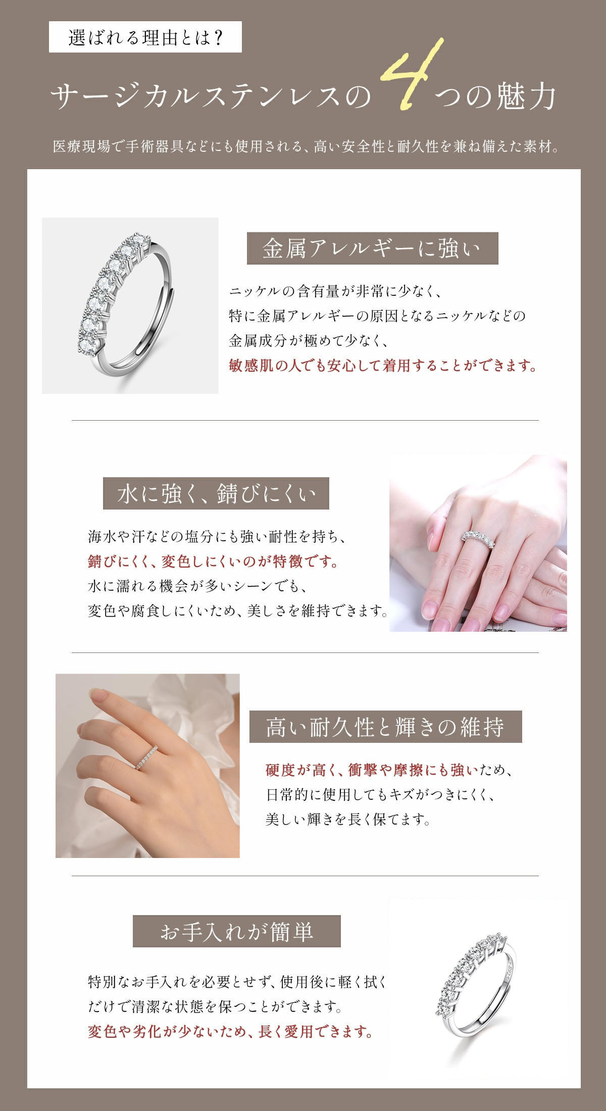 【クラシックデザインで、快適な着用感】このレディースシルバーリングは、最もクラシックなデザインで、永遠に古くなりません。リングの金属は925純銀で、18Kホワイトゴールドコーティングされており、非常に快適に着用できます。また、エッジが滑らかで、肌や衣類を挟むことはありません。