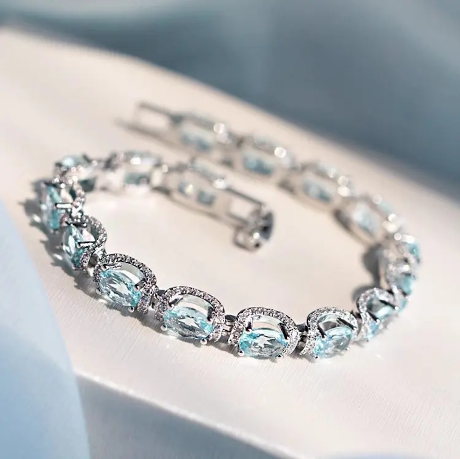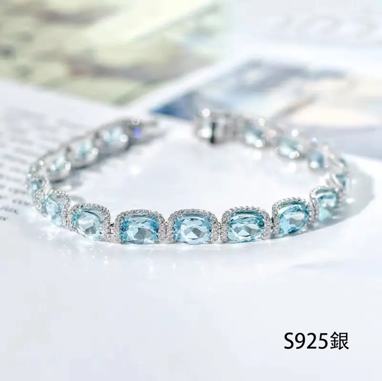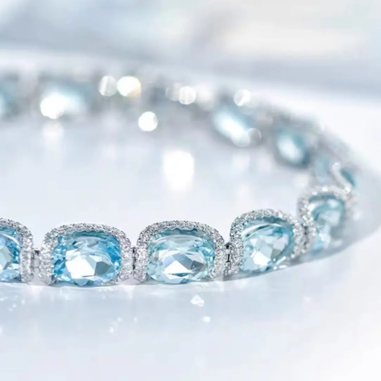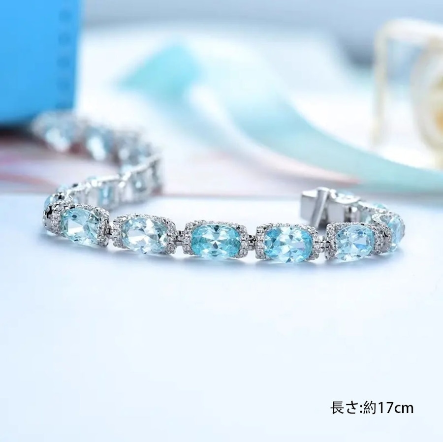 S925純銀レースデザインのアクアマリンブレスレット彼女や親友への誕生日プレゼント、記念日ギフト