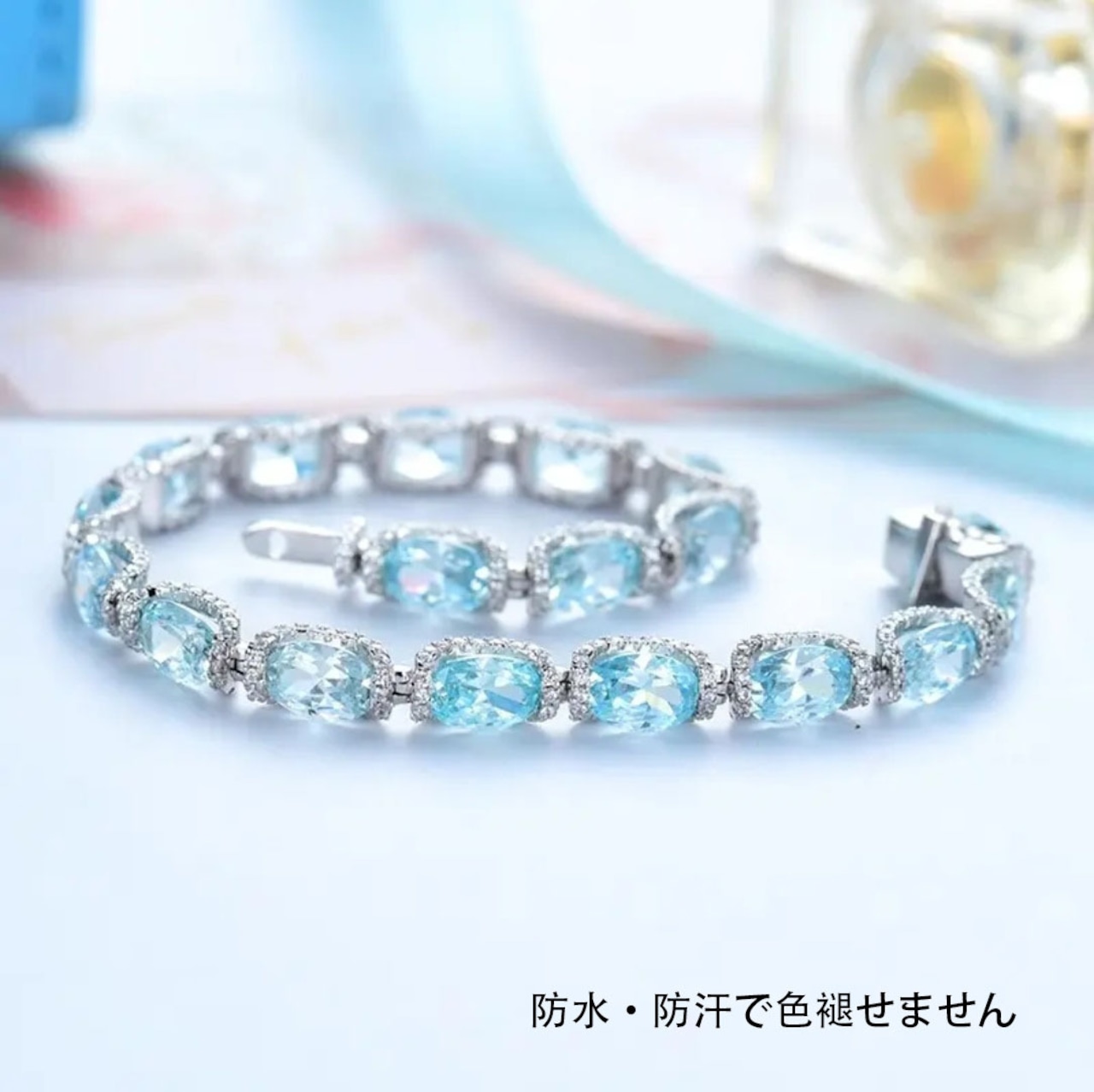 ブレスレット:スターリングシルバーとアクアマリン製、きらきらと輝き、目を惹きます。あなたの誕生石を選んで、腕に独創的なアクセサリーを身につけましょう。