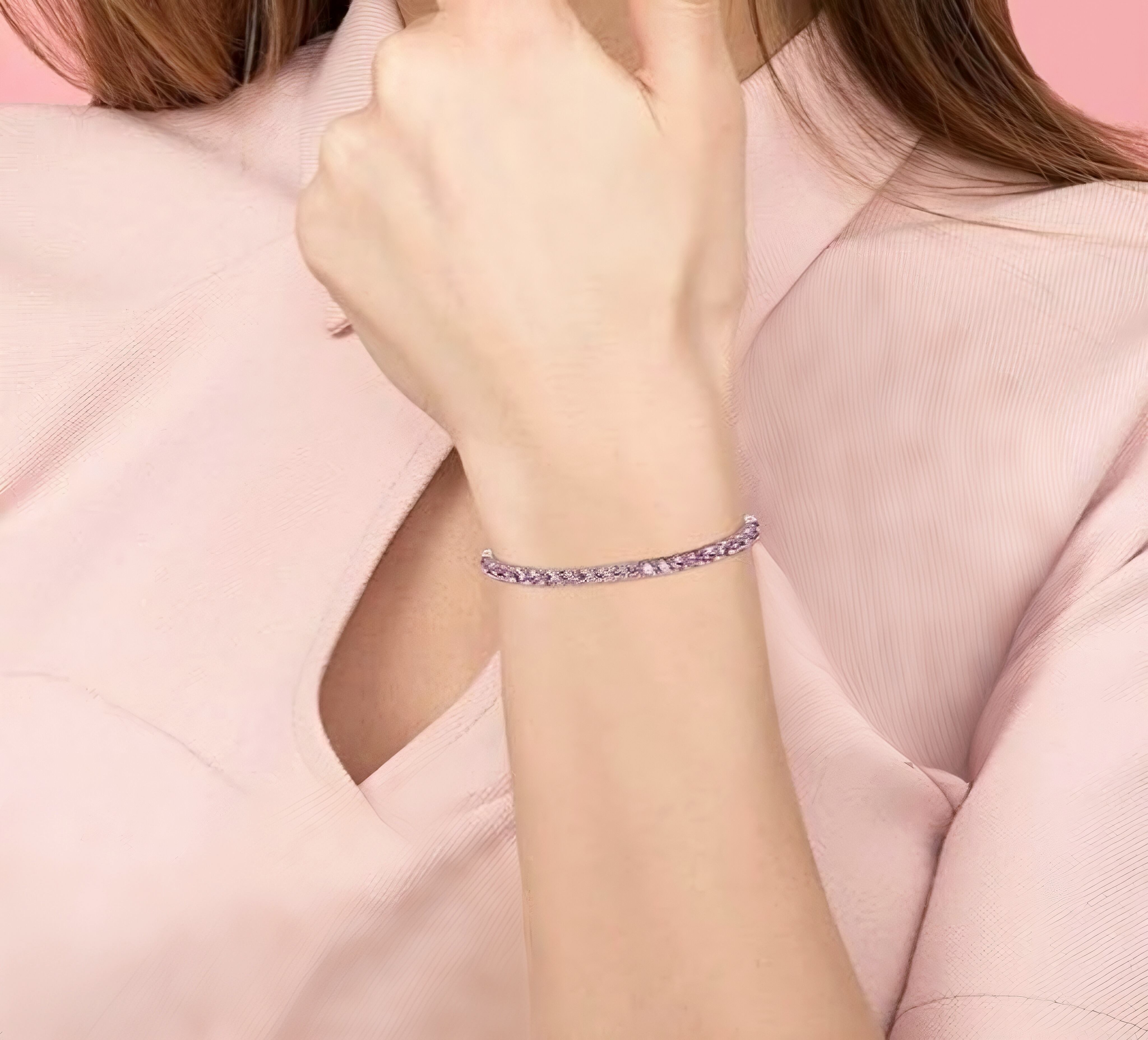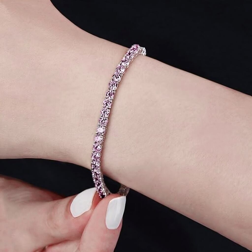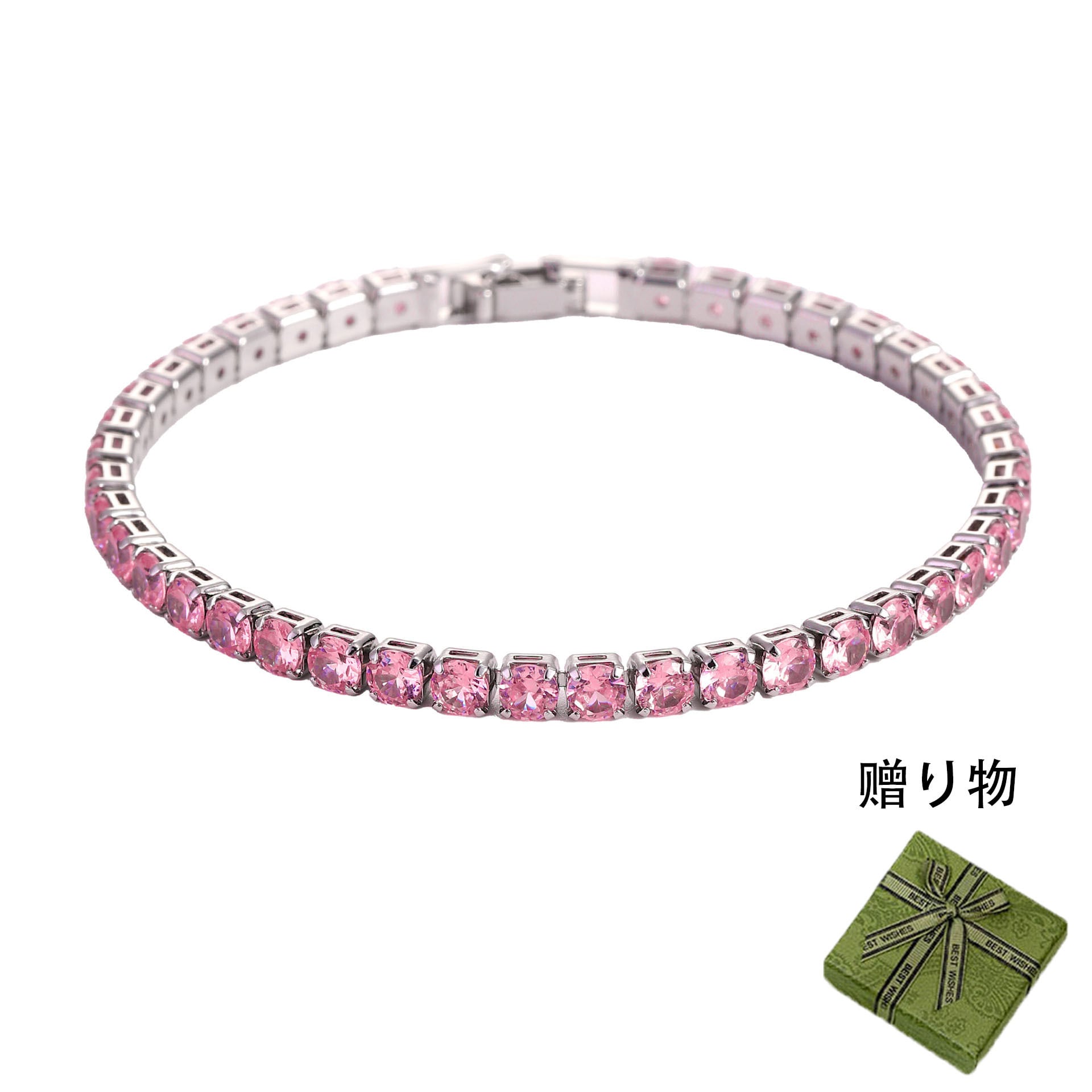 S925純銀ピンクのジルコン ブレスレット彼女や親友への誕生日プレゼント、記念日ギフト
