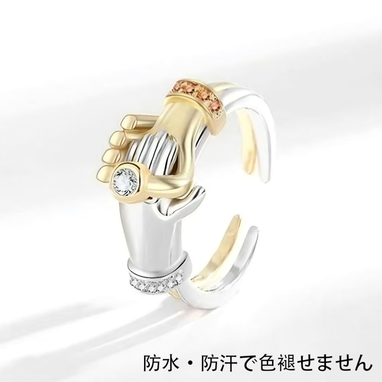 S925銀製のハグ&ハンドシェイクリング、親友への誕生日プレゼント、記念日ギフトに最適