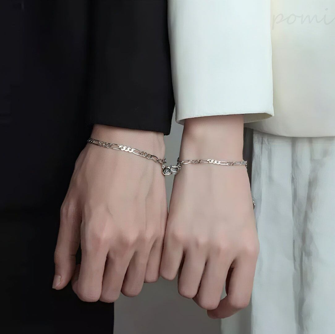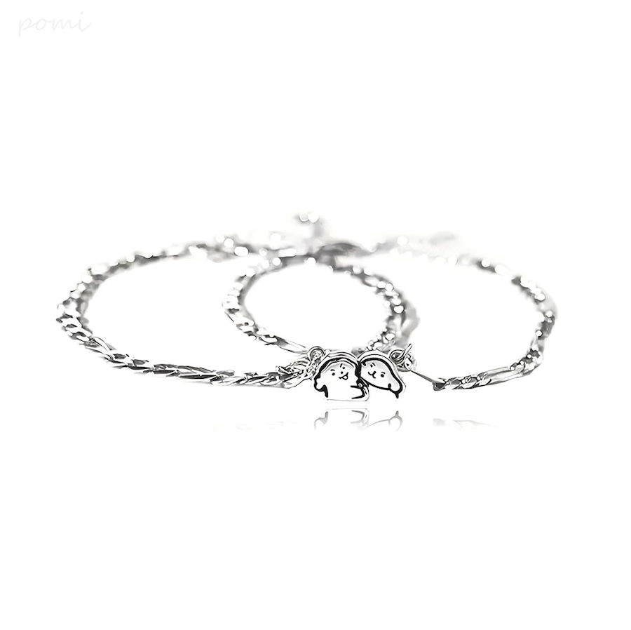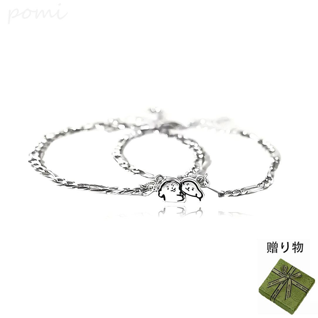 S925純銀犬マグネットカップルブレスレット、カップルや友人への誕生日・記念日ギフトに
