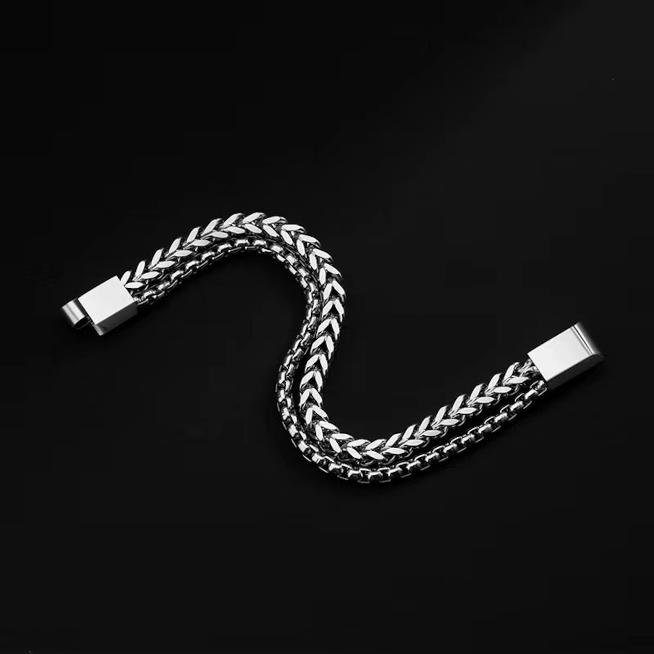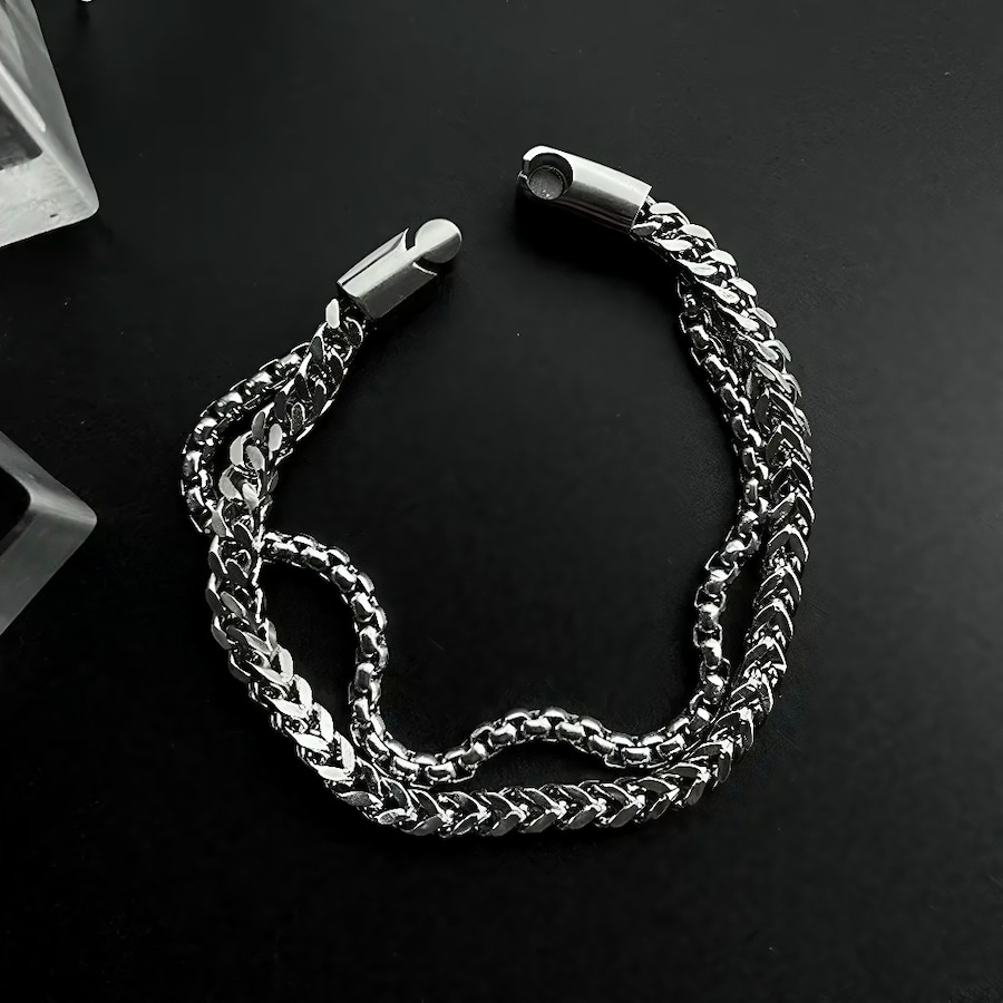 ダブルチェーンデザイン:エレガントなダブルラインのキューバンチェーンパターンが特徴で、クラシックなスタイルとモダンな洗練感を融合させています。