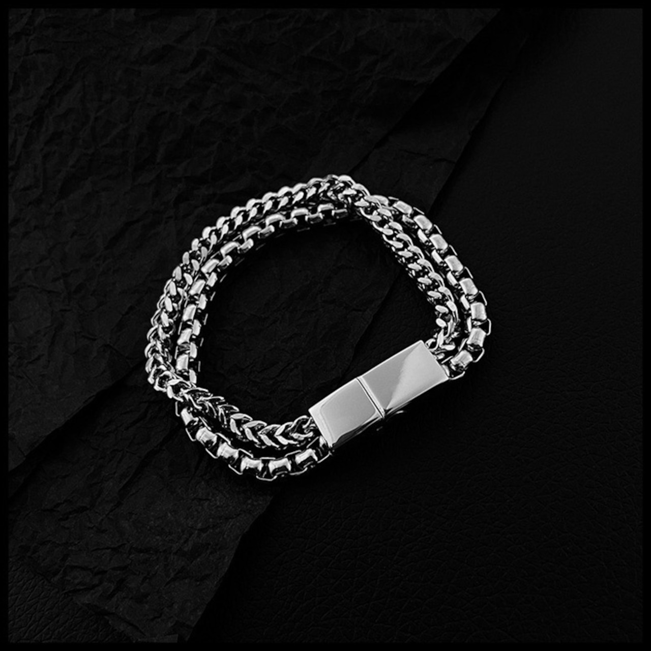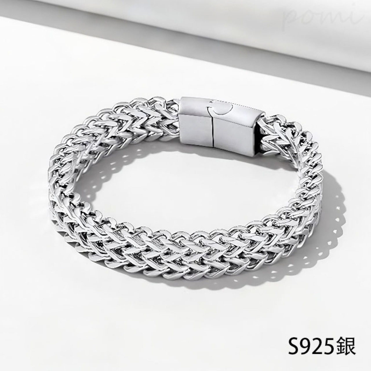 S925純銀四角編みの両面チェーン磁石バックルブレスレット、親友への誕生日プレゼント・記念日ギフトに最適