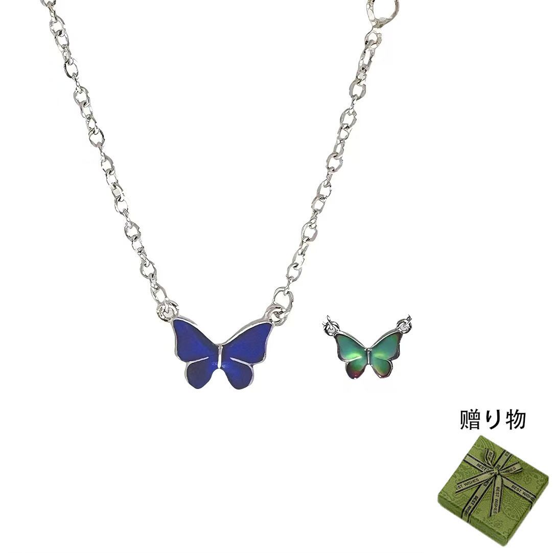 S925純銀温感変色バタフライネックレス、親友への誕生日プレゼント・記念日ギフトに最適