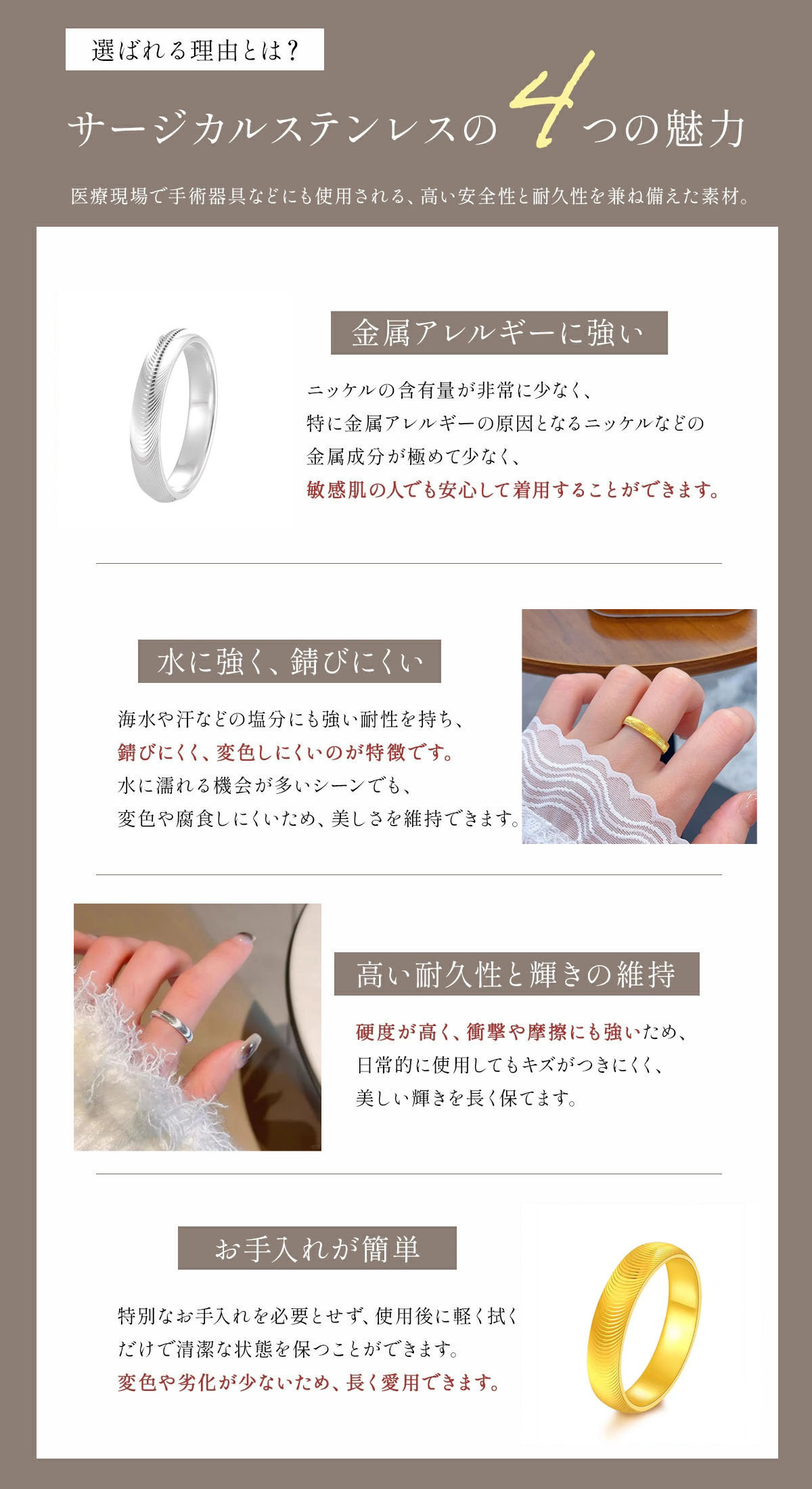 【中実心の閉じたデザイン】指輪は中実心の構造で、質感が抜群で、手に持つとその分量と品質を明らかに感じられます。閉じたデザインは着用の安定性を確保し、脱落しにくく、同時に指輪のラインをより流麗で精緻にします。
