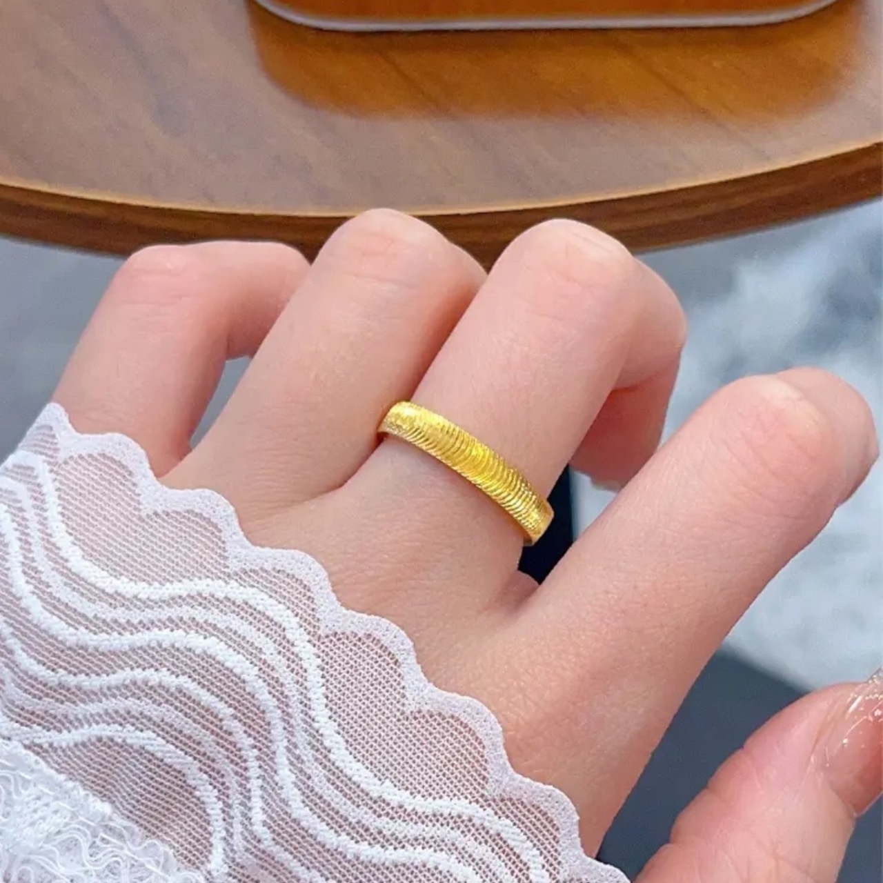 【シンプルリングの波紋デザイン】シンプルなリングデザインを採用し、シンプルでありながらも優雅さを失わず、波紋のテクスチャーは細やかでリズム感に富んでおり、従来のシンプルリングの単調さを打破し、指輪がシンプルの中に精緻さと個性を際立たせます。