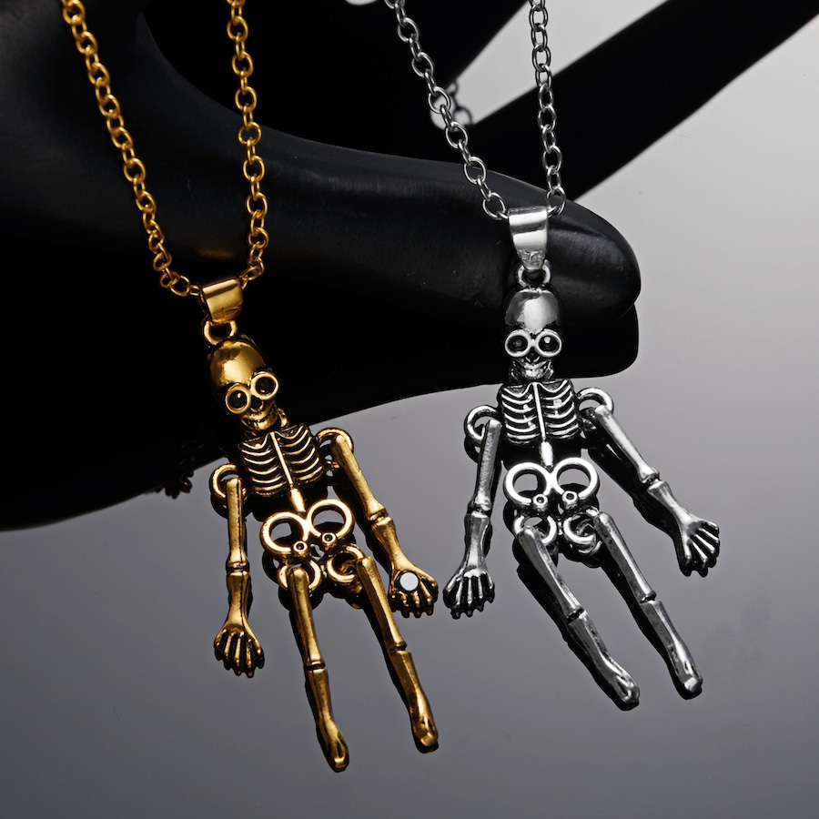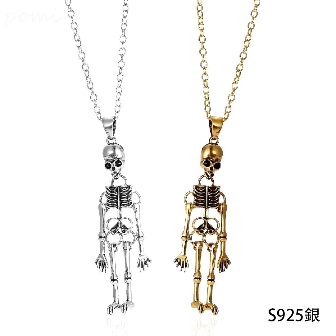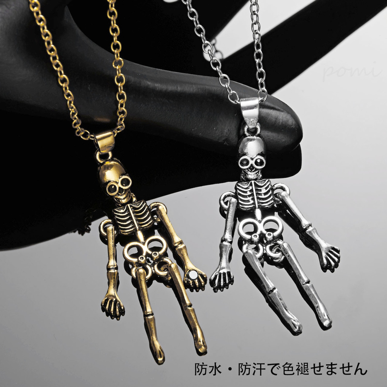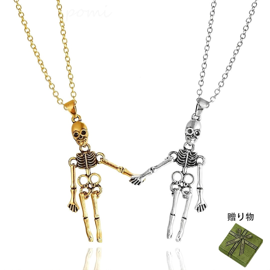 新作ハロウィン ヴィンテージスタイルのドクロゴーストネックレス / ハンドインハンドドクロペンダント カップルネックレスアクセサリー