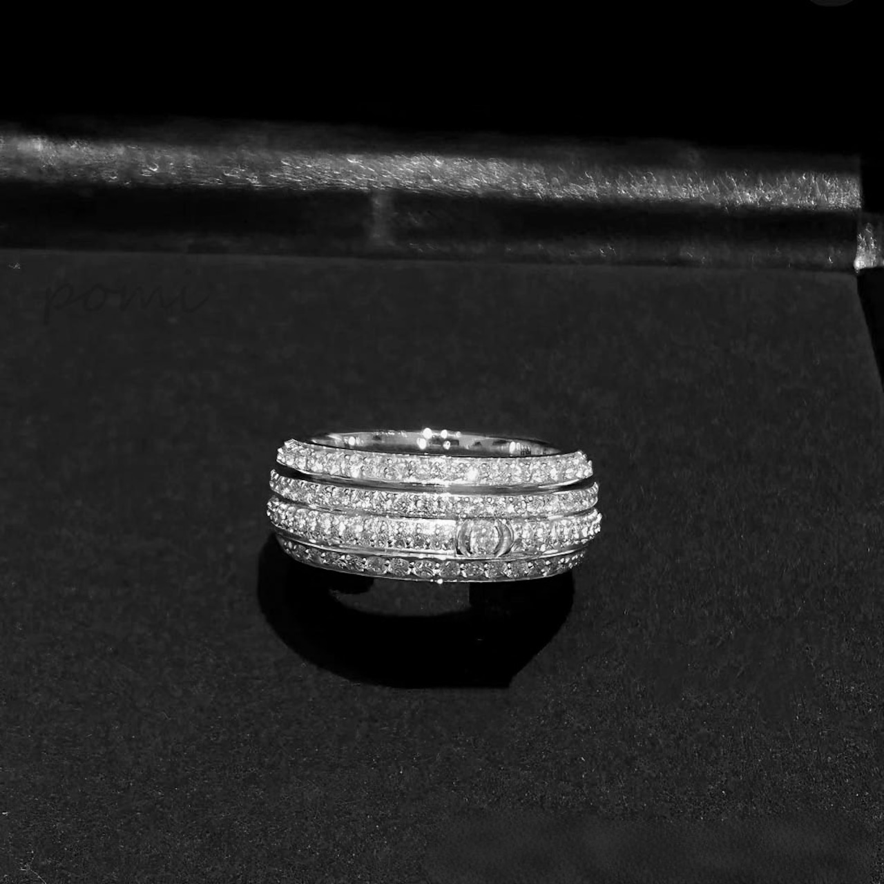全体のデザインから細部に至るまで、この指輪は比類のない卓越した技術を見せつけています。指輪の輪は流れるようなラインで、指の弧に沿っており、快適にフィットし、全く窮屈感がありません。幅は慎重に考慮されており、広すぎて重苦しく見えず、細すぎて存在感がないということもなく、ちょうど良く優雅さとファッション性のバランスを示しています。指輪の端は細かく磨かれており、滑らかで丸みを帯びており、肌を傷つける心配がなく、一つ一つの細部から職人の心配りと専念が感じられます。