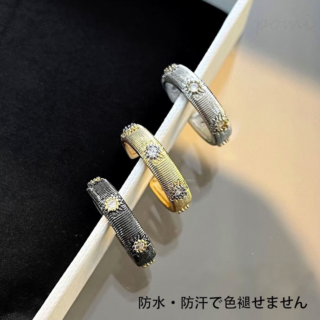 360°全方位満嵌デザインで、光の屈折により星のような輝きを放ち、日常装着でも目を引く輝きを演出。