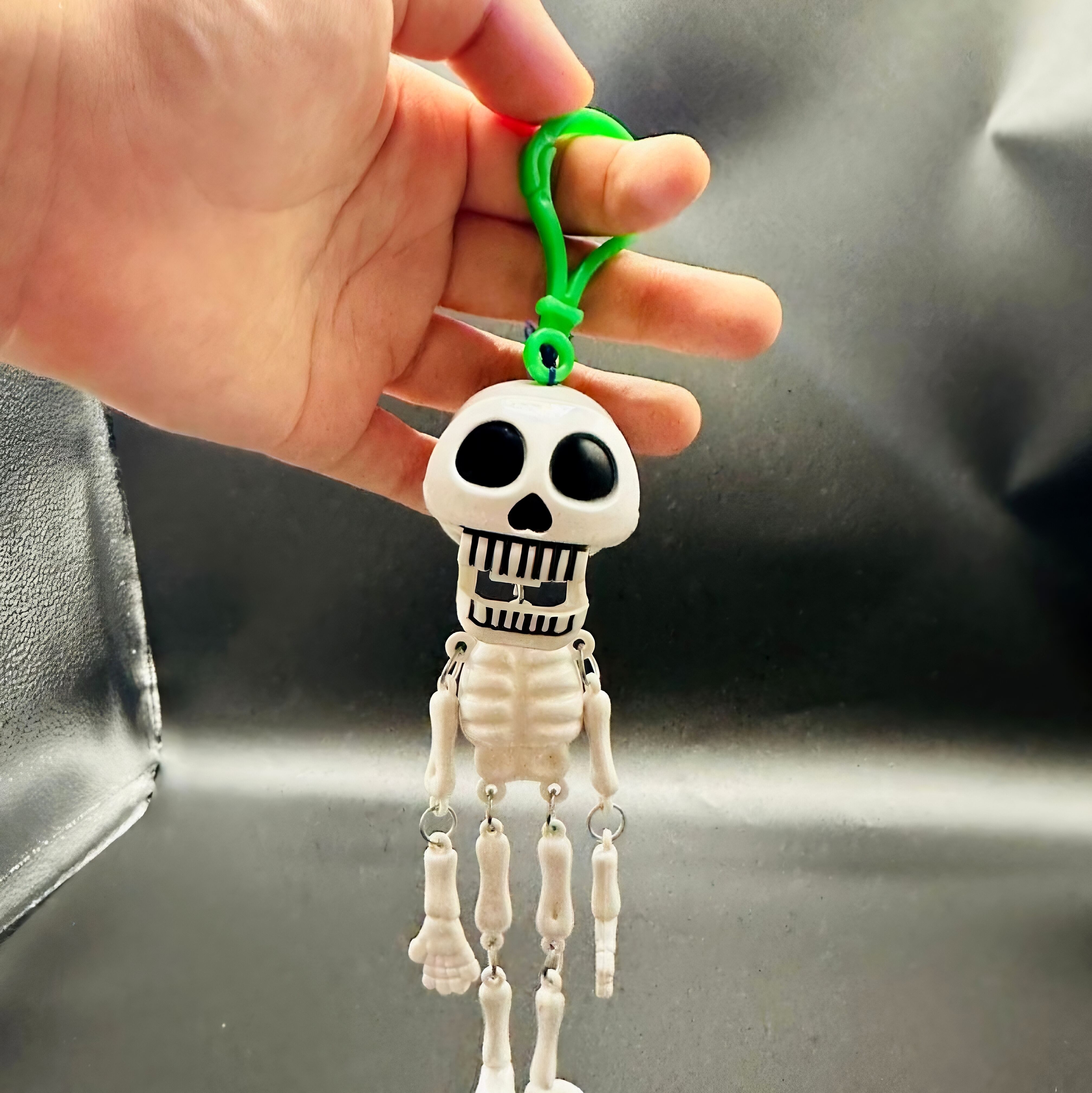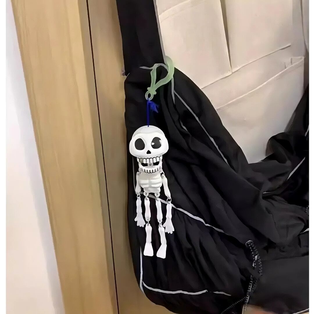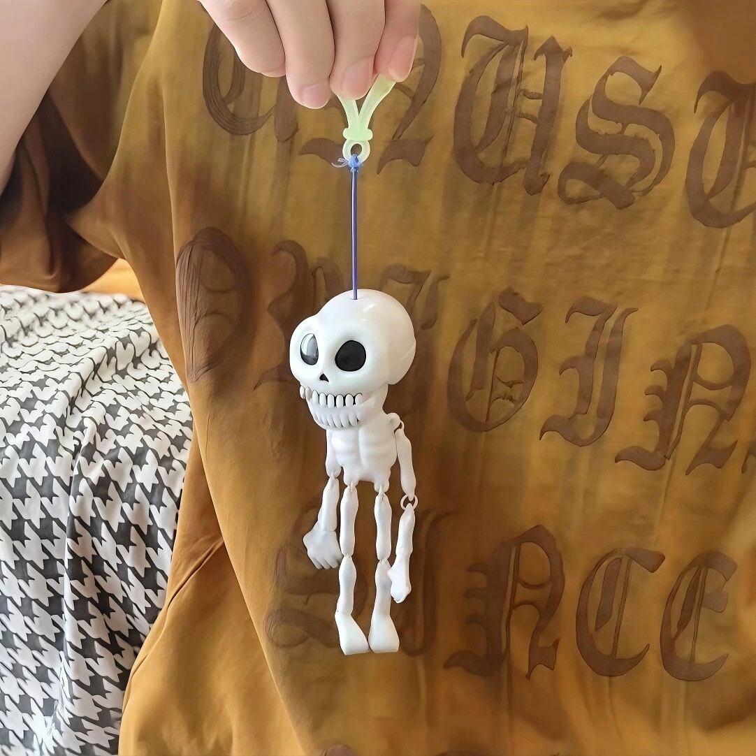 紐を軽く引くと、スカルの頭が瞬間的に「口を大きく開けて笑い」、コミカルな表情を見せて、まるでイタズラをしているかのよう!