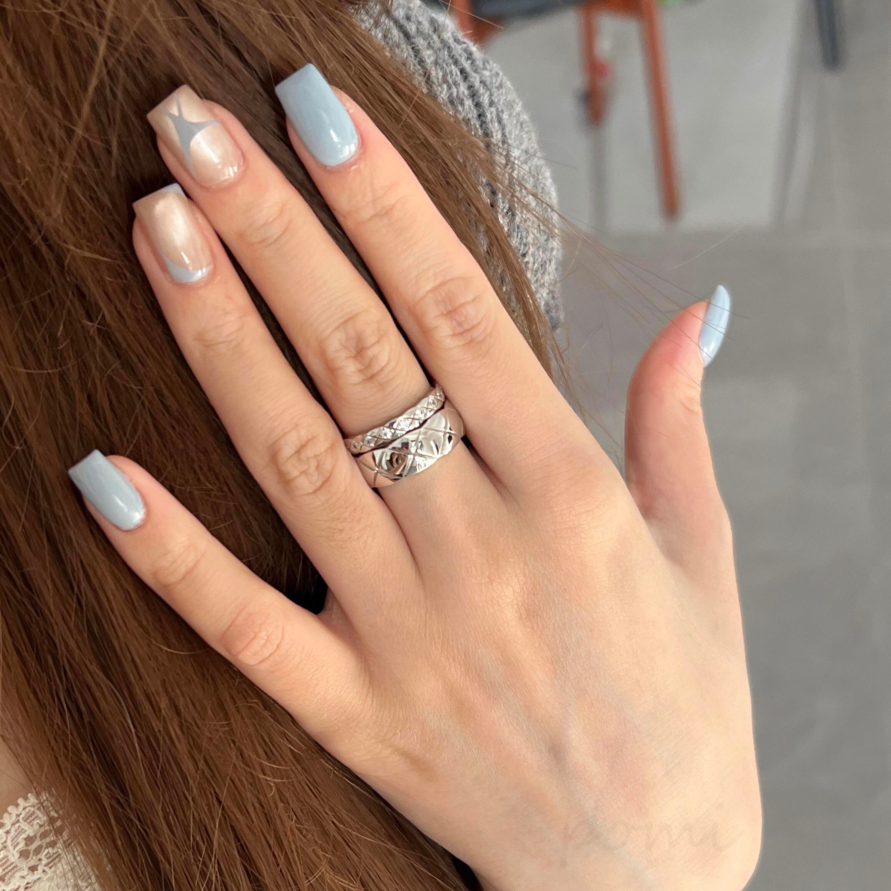 高品質素材:高品質の金属素材(例:925シルバー)を厳選し、精密な研磨と抛光処理を行い、リング表面が滑らかで繊細、光沢が長持ちすることを確保。同時に、素材は安全で環境に優しく、快適に着用でき、刺激がない。