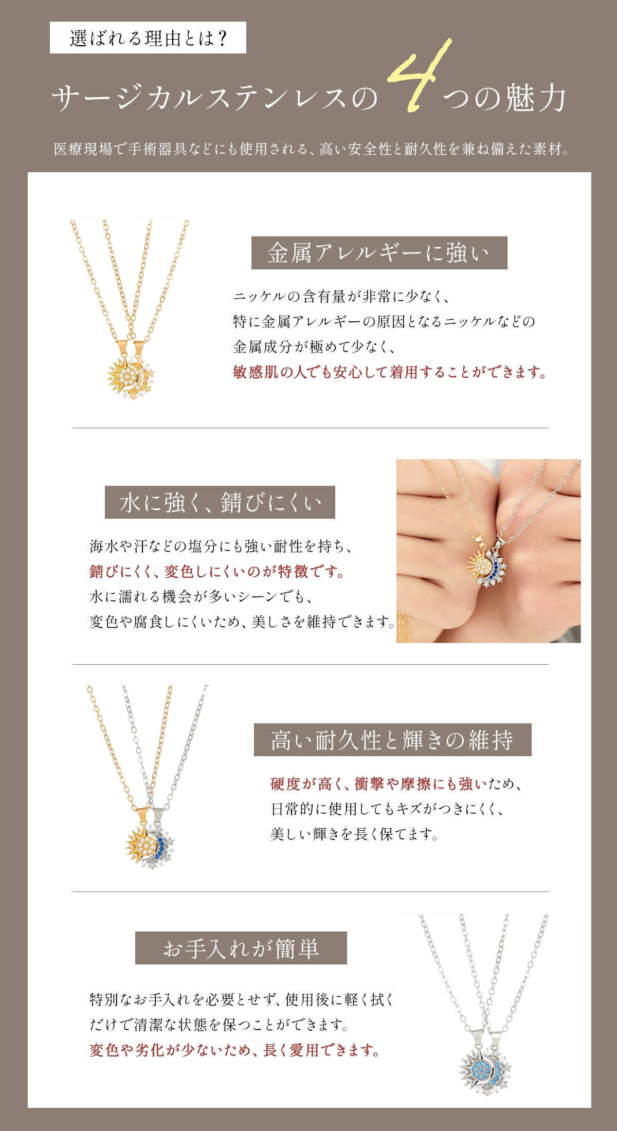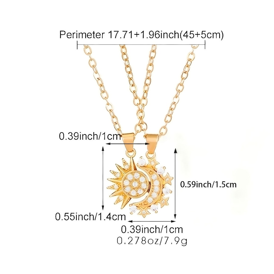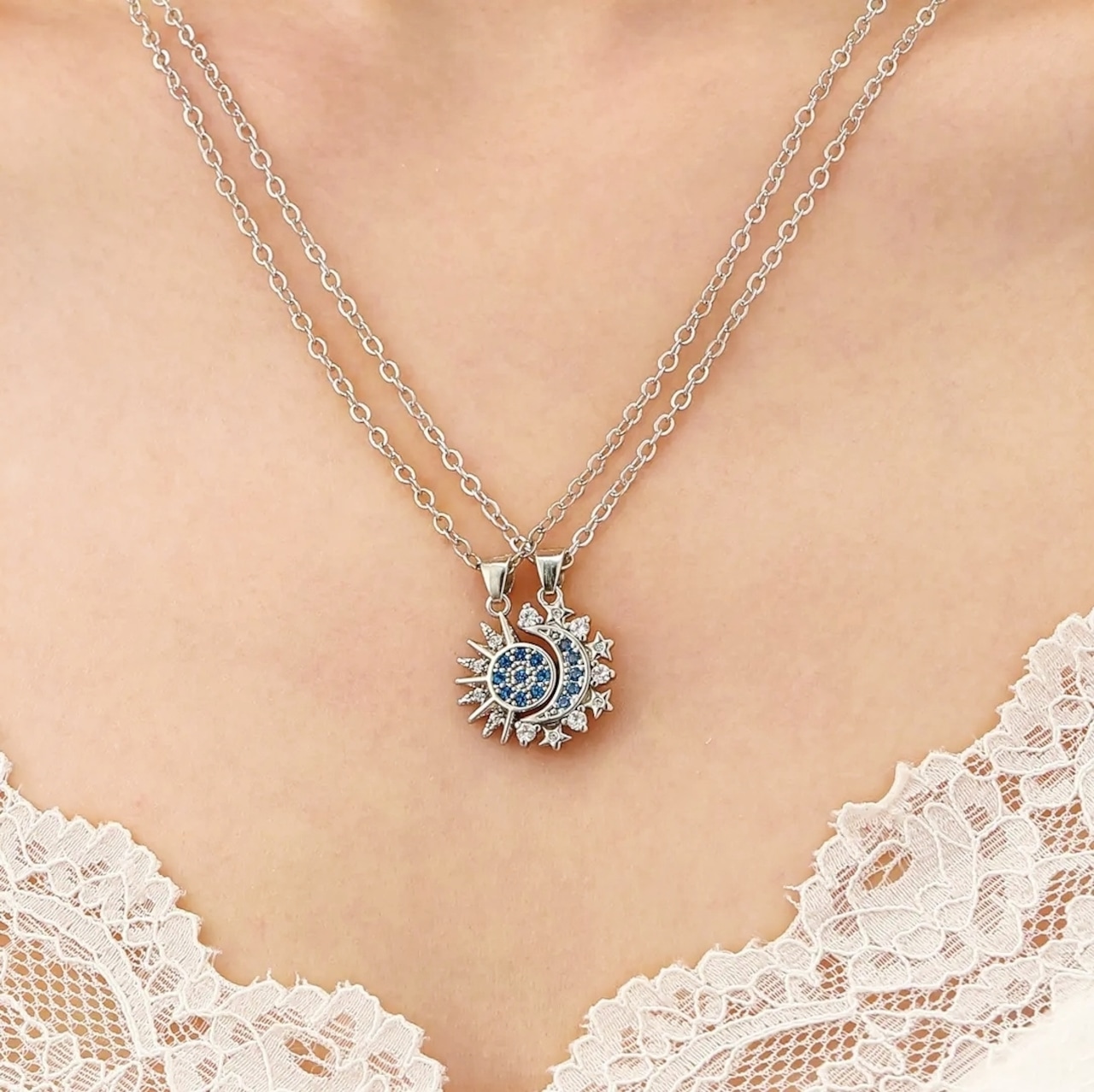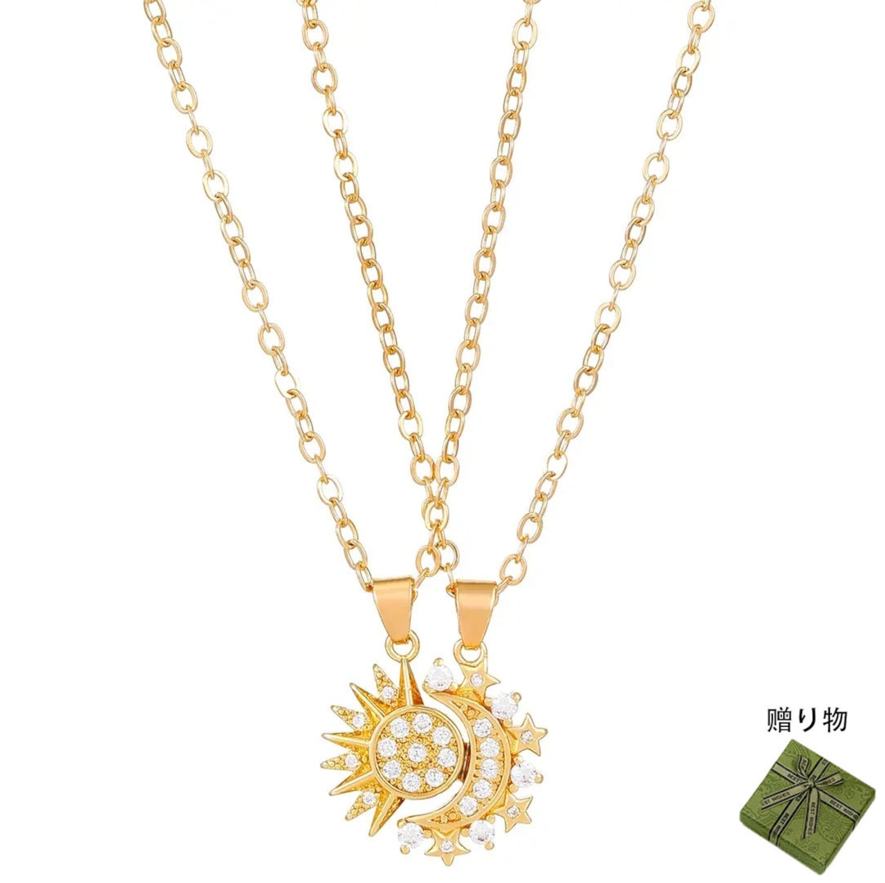 日月磁石吸着式ネックレス - 彼女や親友への誕生日プレゼント、記念日ギフトに最適