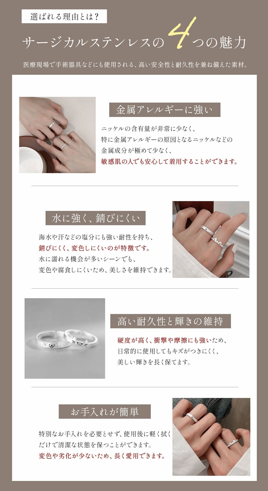 【万能スタイル】プロミスリングとしても、日常のカジュアルアクセサリーとしても使用可能で、カップルとペットとの絆を表現できます。
