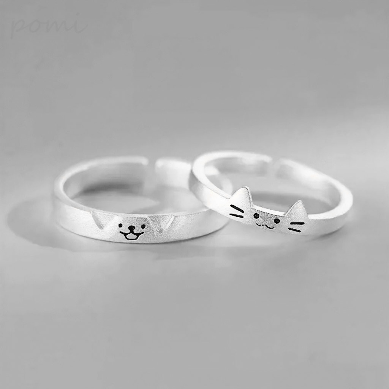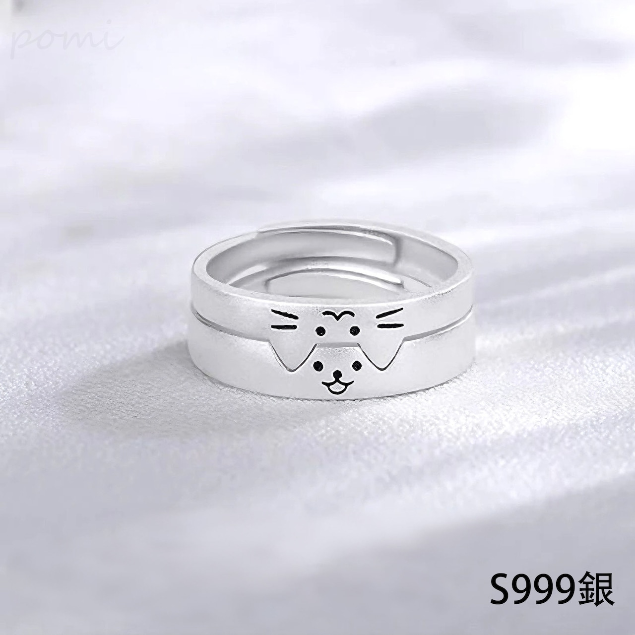 S999純銀「猫と犬の日記」カップルリング、個性的でかわいいスタック式ペアリング、開口でサイズ調節可能な純銀アクセサリー