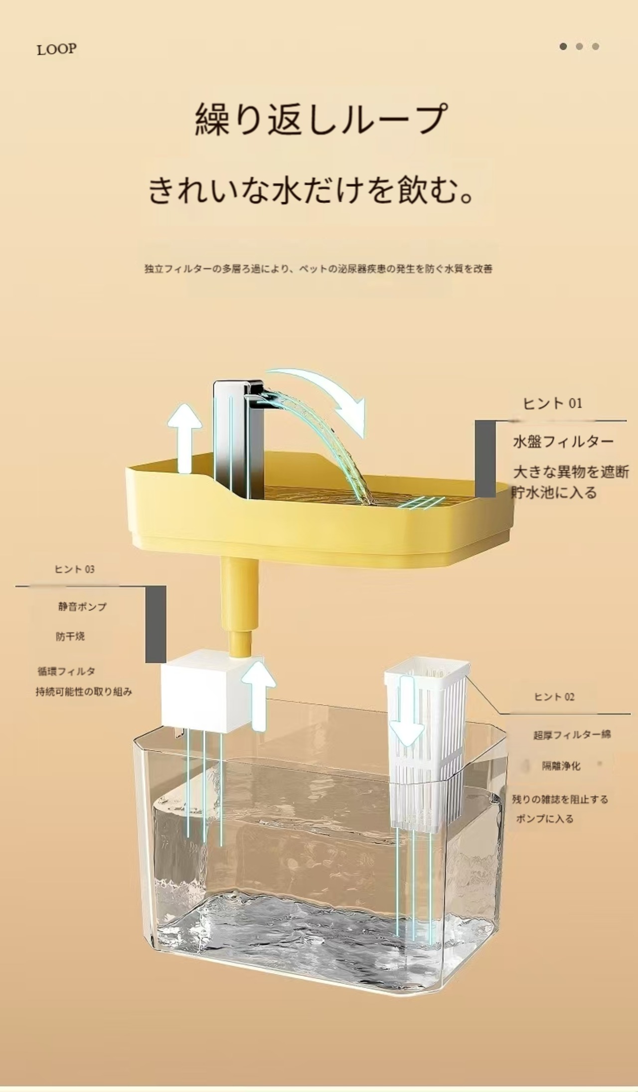 ペット用ウォーターディスペンサー 自動循環流動式静音給水器 口周り濡れない飲み水器 ウォーターボウル ペット用品