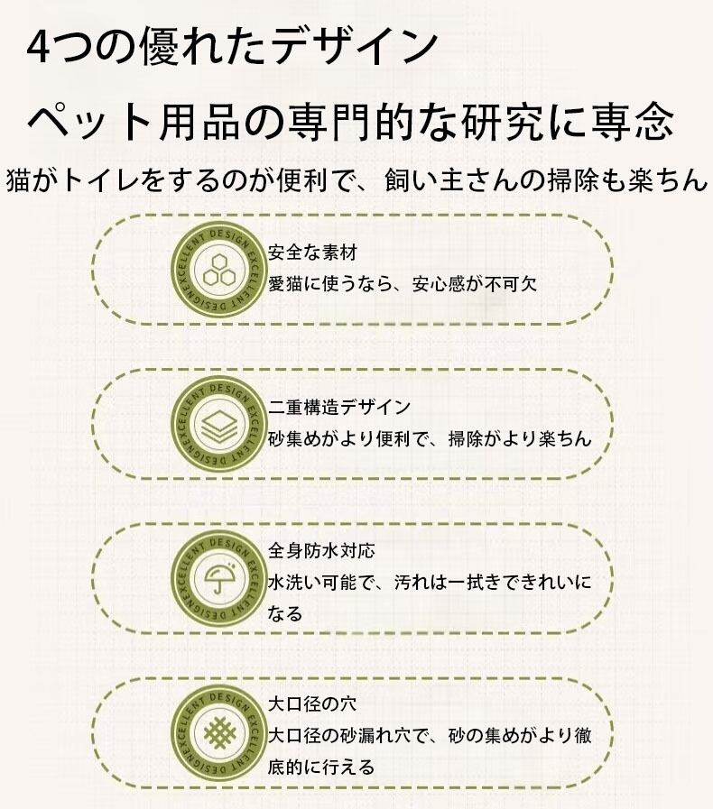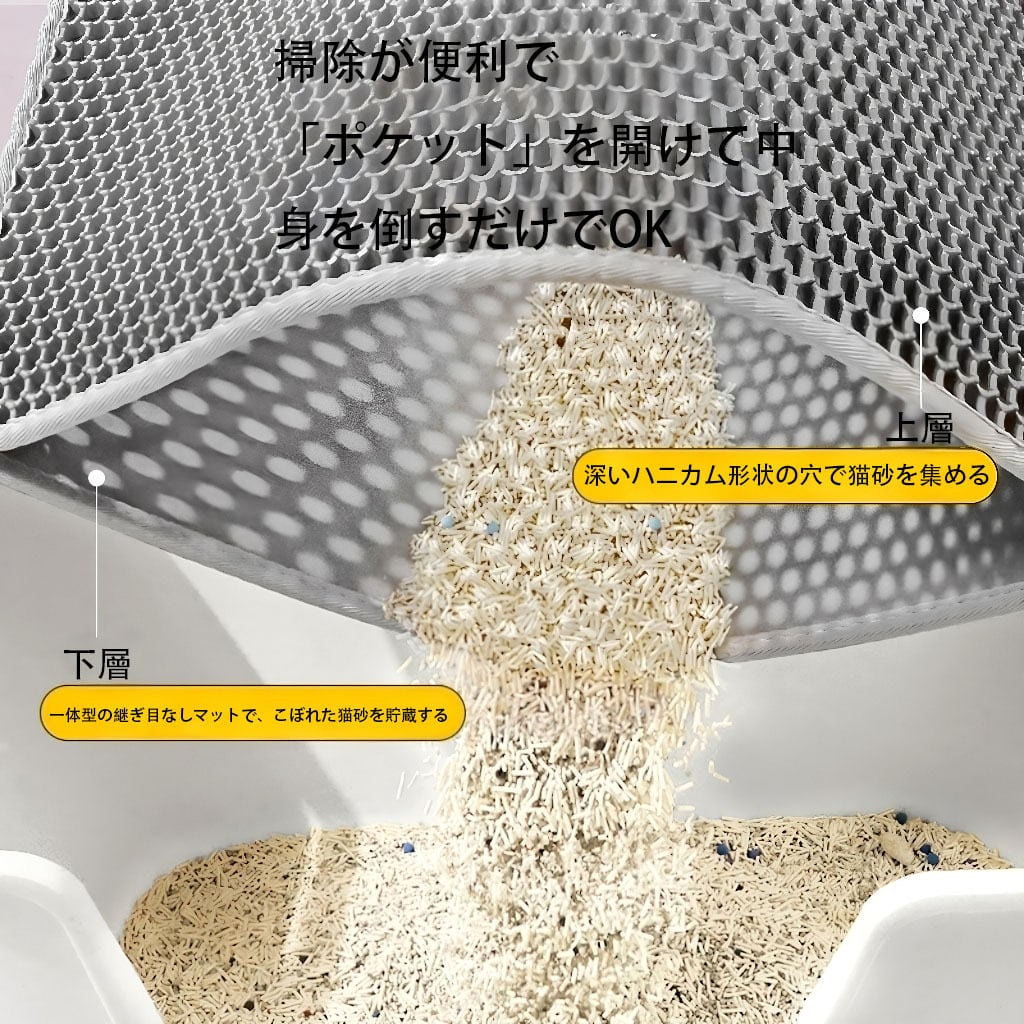 猫砂マットは独特な二重フィルターデザインを採用し、さらに猫砂の漏れを防ぎ、きれいな状態の猫だけがマットから出るようにしています。