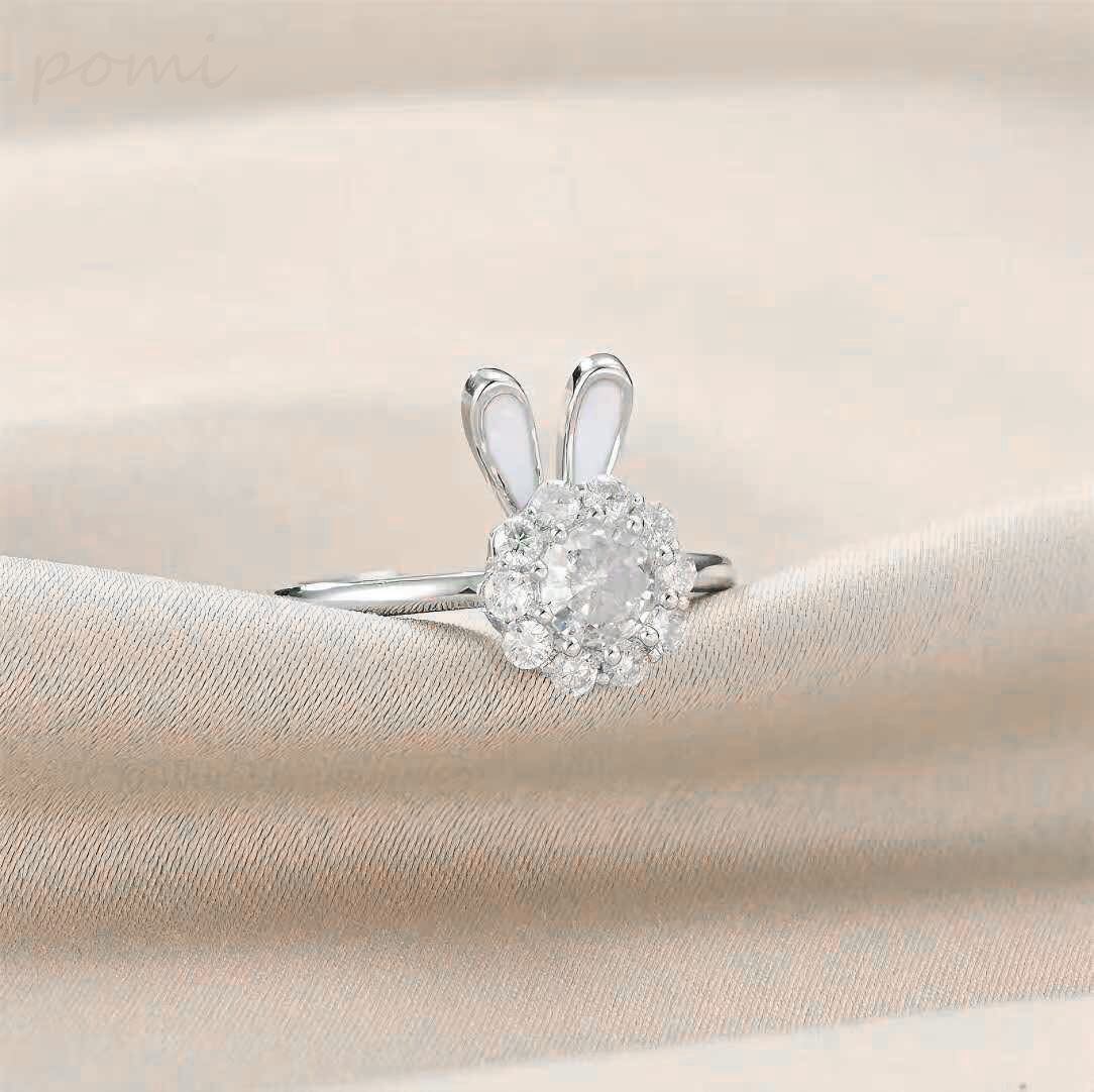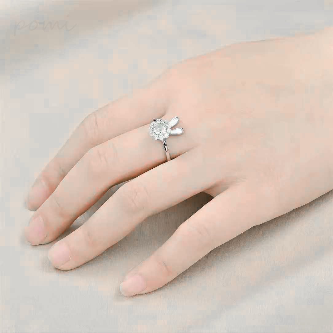 指輪の最大の特徴は回転可能なデザインです。軽く動かすと、ウサギの部分が柔軟に回転し、この小さなウサギに生き生きとした生命力を与えたかのようです。