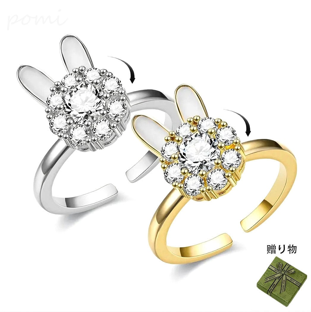 回転可能な干支の兎モチーフの指輪/運気が巡る兎のリング/おしゃれで可愛いオープンリング