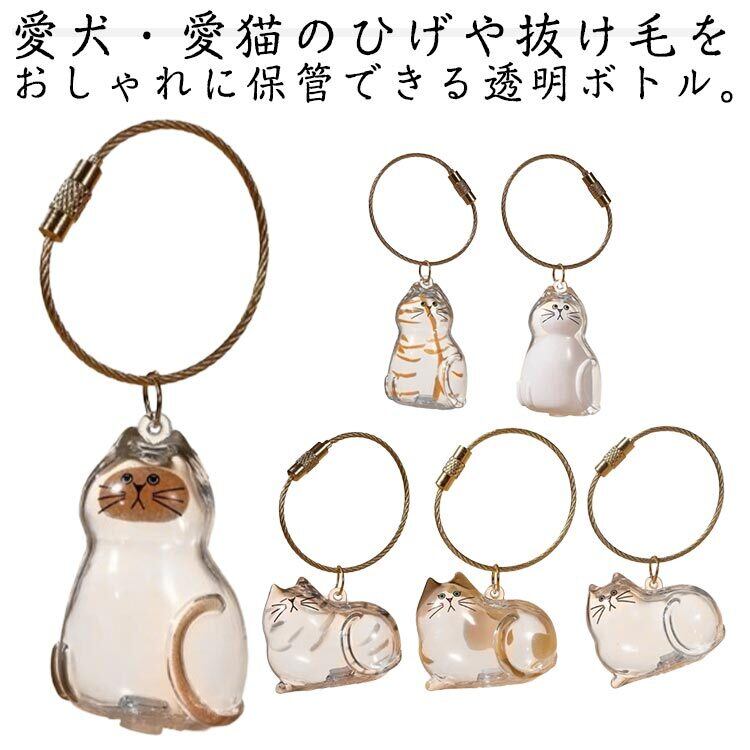 透明 ネコ 猫の毛収納ボトル ペット 毛を保管するボトル かわいい ペットひげ・抜け毛収納 携帯 ねこ 猫 小動物