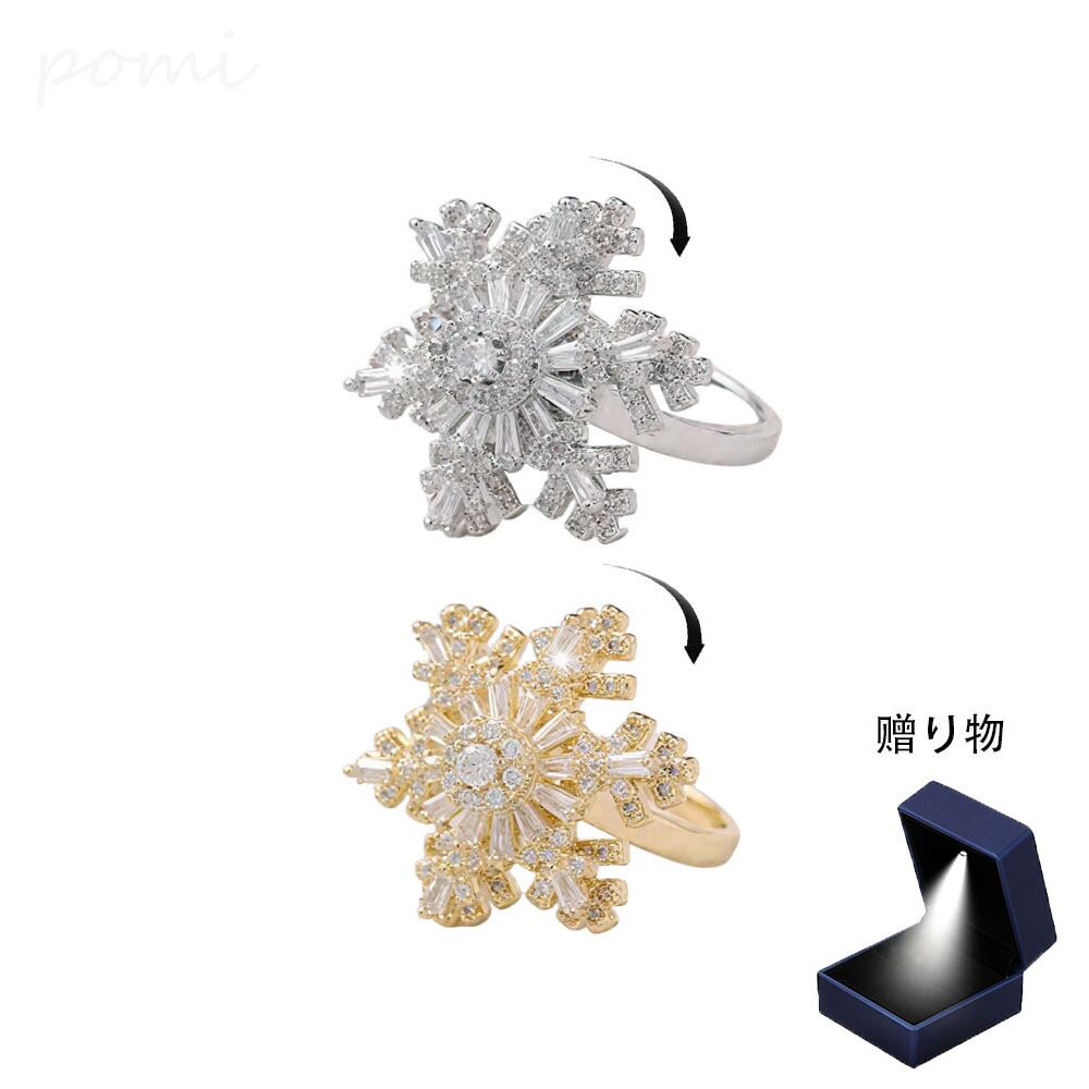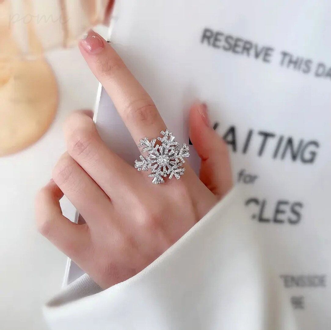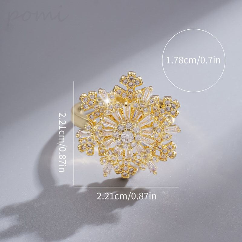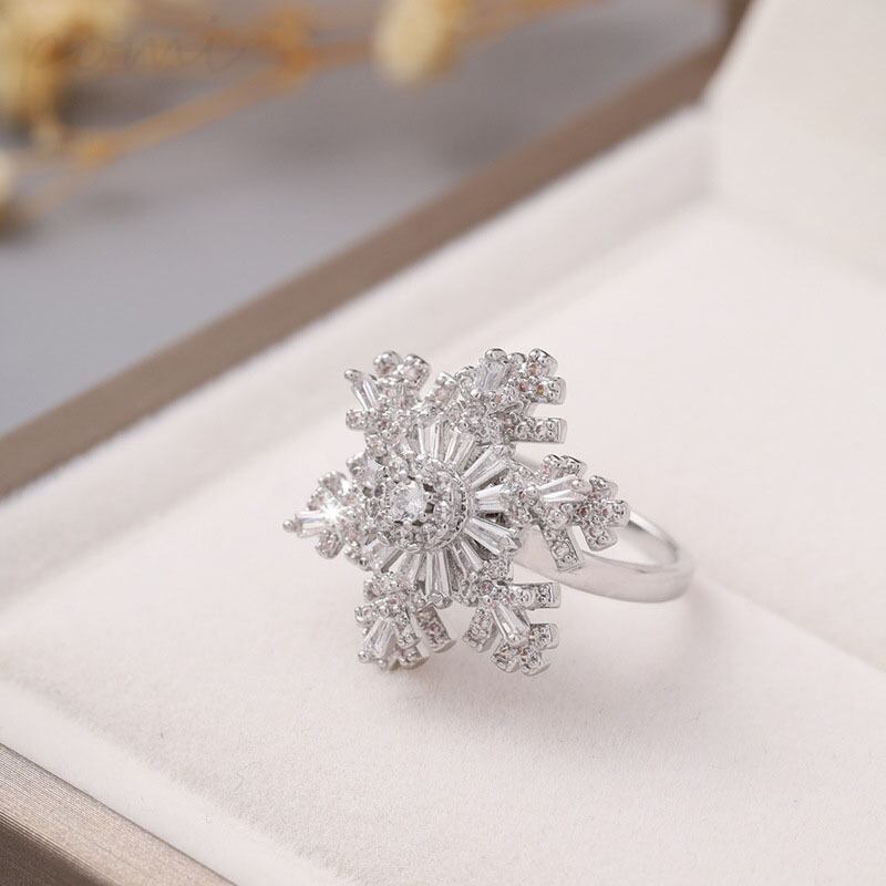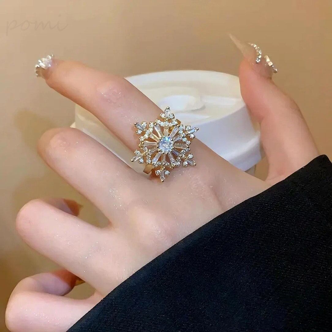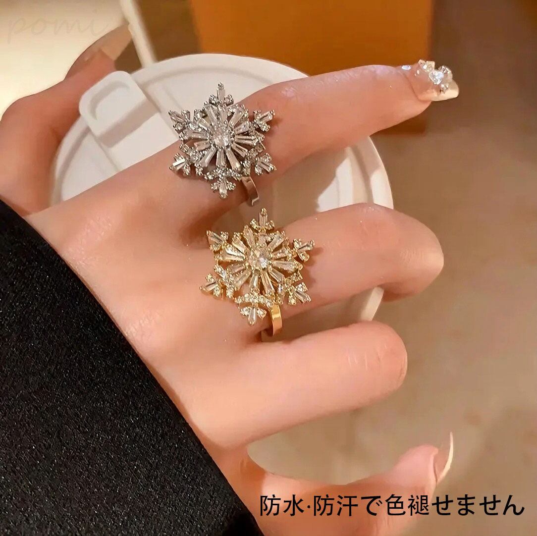 ファッショナブル新作 スノーフレーク2段回転式オープンリング 女性向けインスタ風クオリティ サイズ調節可能指輪
