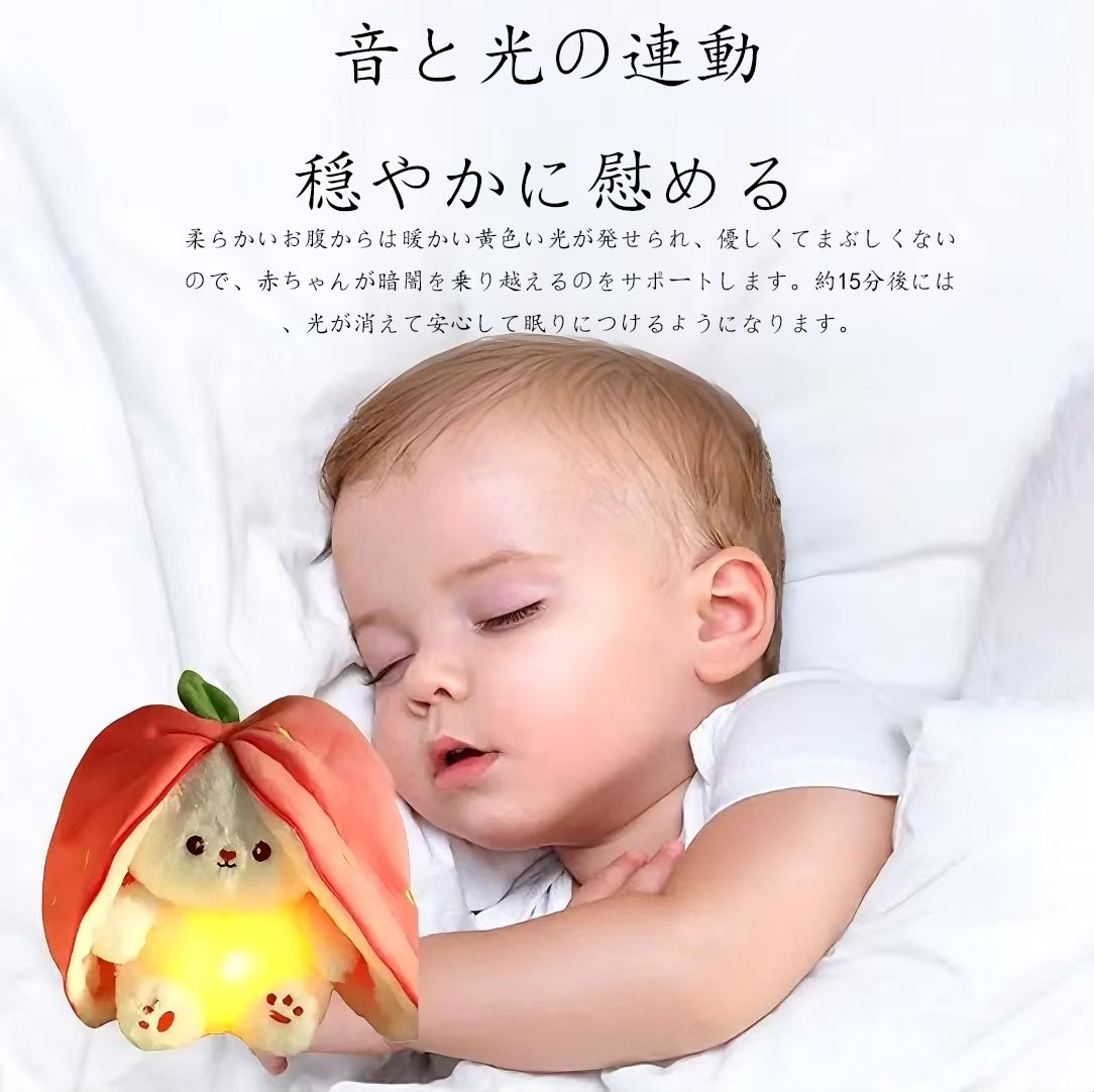 夜光モード:お腹を押すと柔らかい星の光が点灯し、夜中に起きた時も暗闇で手探りしなくて済み、安全に一晩中つきそいます