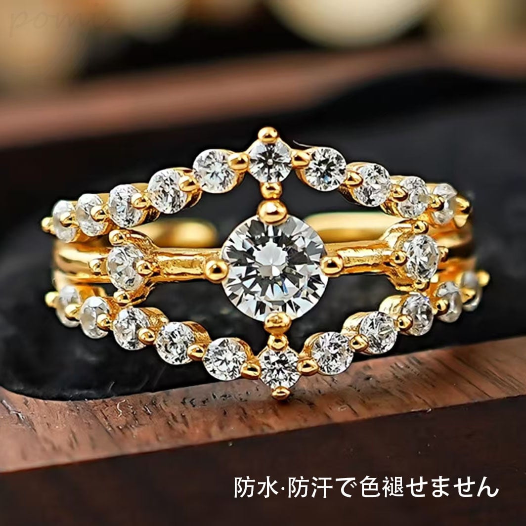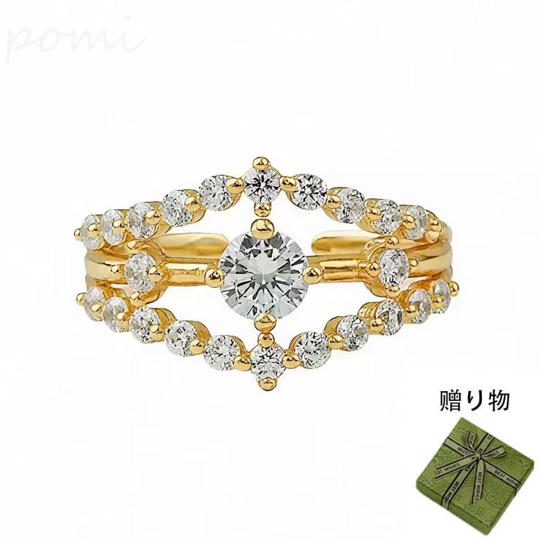 サイズ調節可能軽奢なクラウン925シルバーハイカーボンダイヤモンドリング インスタ風リング ニッチでベーシックなデザイン