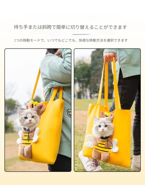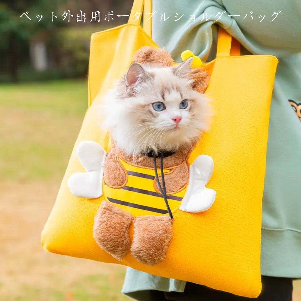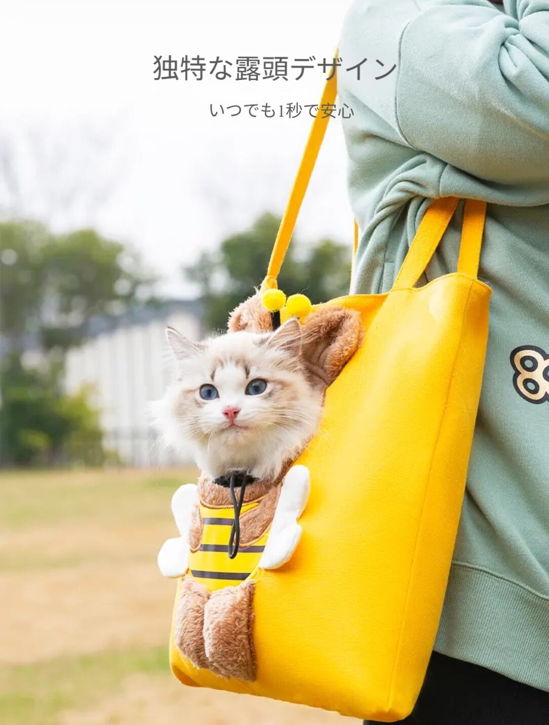 ペット外出用キャンバスバッグ 折りたたみ式ポータブルショルダーバッグ 頭が出せる猫や小型犬用ペットバッグ 通気性抜群