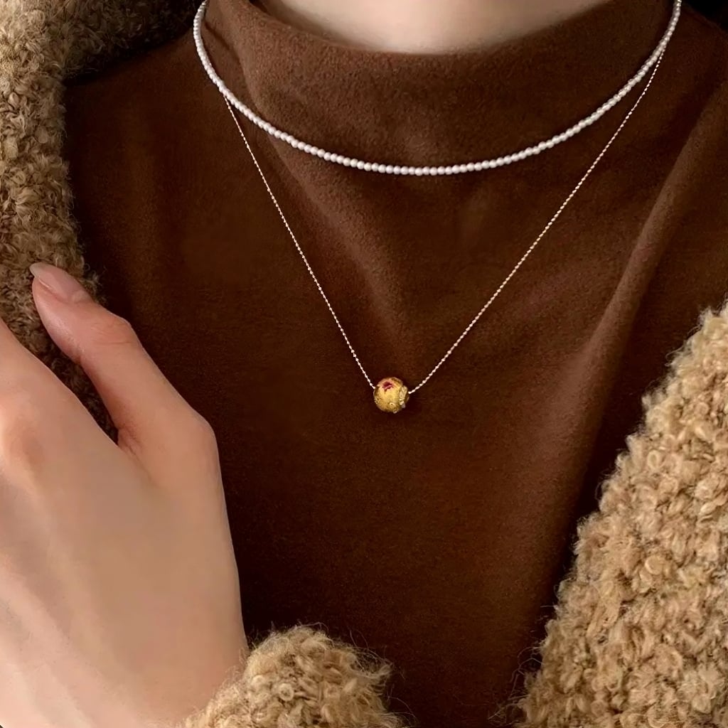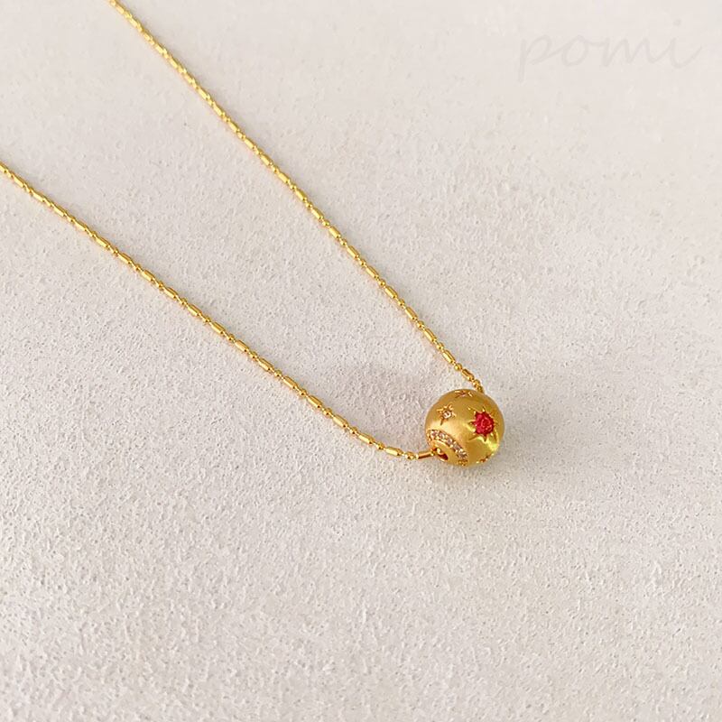カレイドスコープ風運勢上昇ビーズネックレス カラーダイヤモンドインレイ ラッセル加工ペンダント 通勤に最適な百搭(オールマイティ)な女性用銅製ネックレス