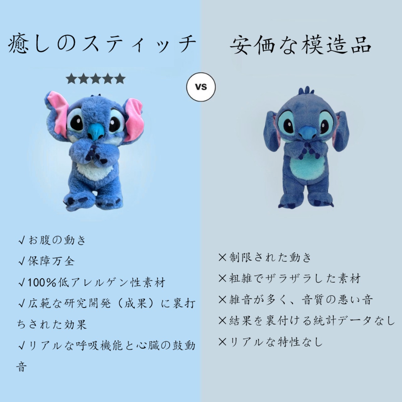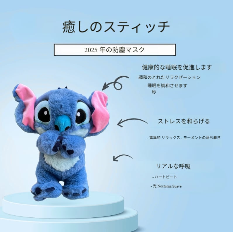 このスティッチぬいぐるみは、先進的な呼吸シミュレーション技術を採用し、まるで本物の呼吸をしているかのような効果を実現。子供に、より生き生きとした、親しみやすい付き添い体験をもたらします。