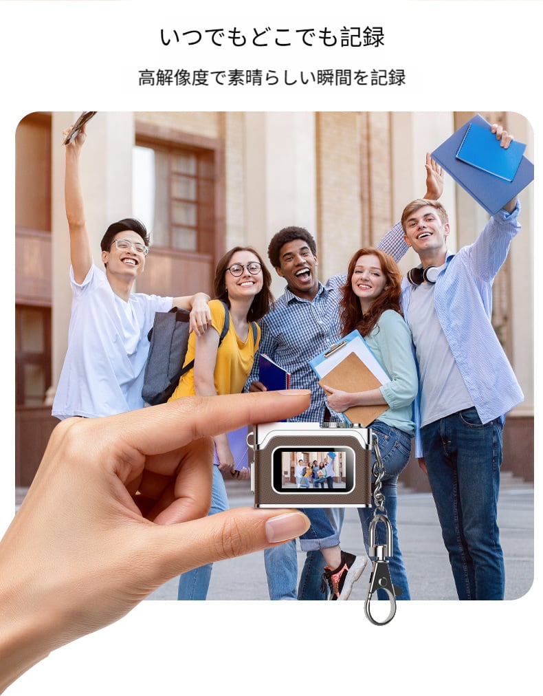 【超携帯性のキーホルダーデザイン】当社の小型カメラで生活の瞬間を捉えよう。このコンパクトなカメラは、ポケットに簡単に入れられ、コンサートや記念日、旅行、あるいは日常の冒険に最適です。付属の紛失防止キーホルダー取り付けで、自発的な撮影を決して逃すことはありません。