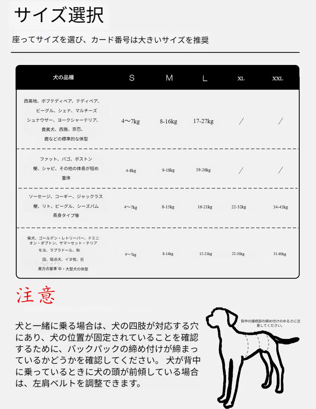 小型犬、中型犬、大型犬の体型の違いを十分に考慮し、複数の規格サイズを精心に設計しました。