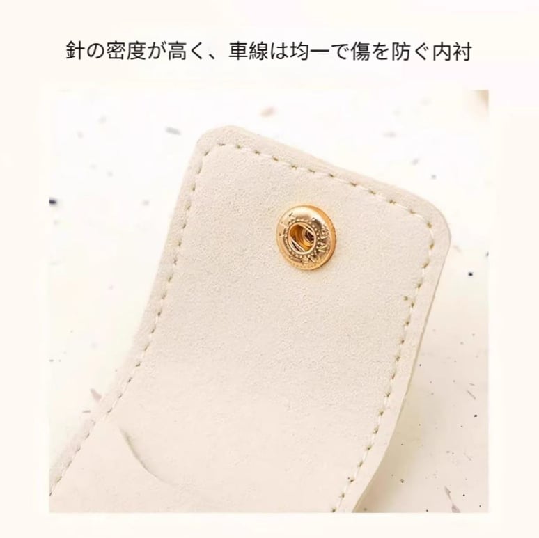 内側はふわふわのベルベット素材で、ジュエリーを優しくキズ、摩耗、衝撃から守ります。長時間の飛行や揺れの激しい乗り物の中でも、あなたのアイテムは安全に保たれ、いつでも輝き続けます。
