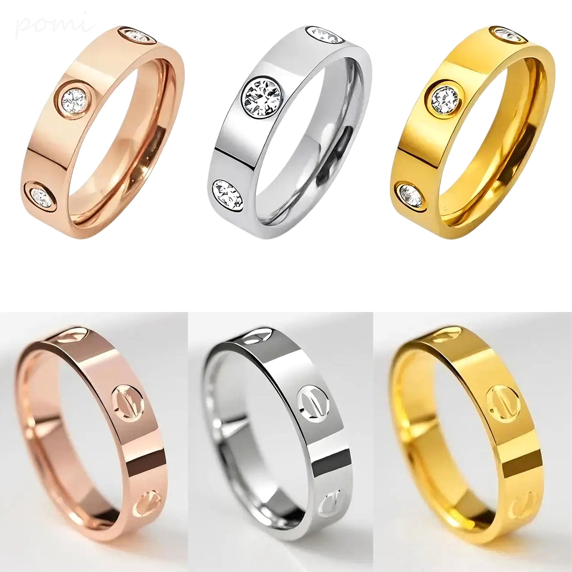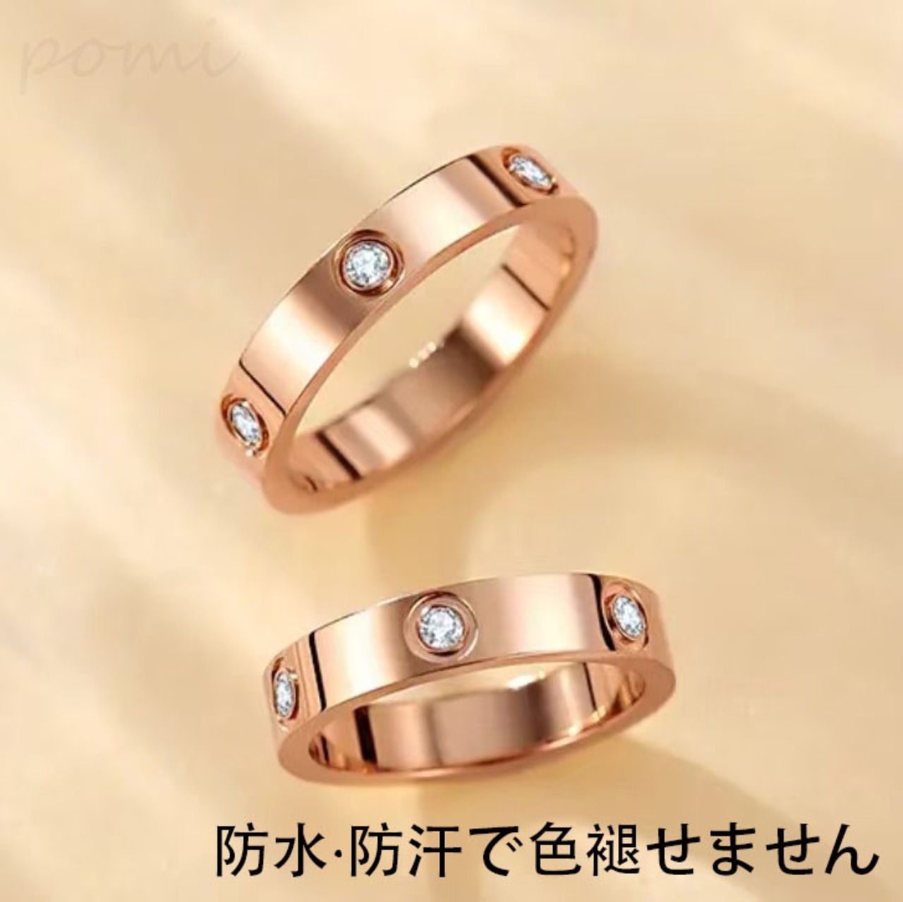 ローズゴールドカラーのジルコニア入りチタンステールプレジュールリングジュエリー 誕生日プレゼント レディース ラブ&フレンドシップ ゴールドリング