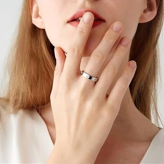 指輪全体は魅力的なローズゴールドの色調を採用しています。この柔らかく温かい色合いは、愛情や友情の中にある繊細で真挚な感情のようで、派手に目立つことはないのに、何気ない瞬間に独特の魅力を放ちます。