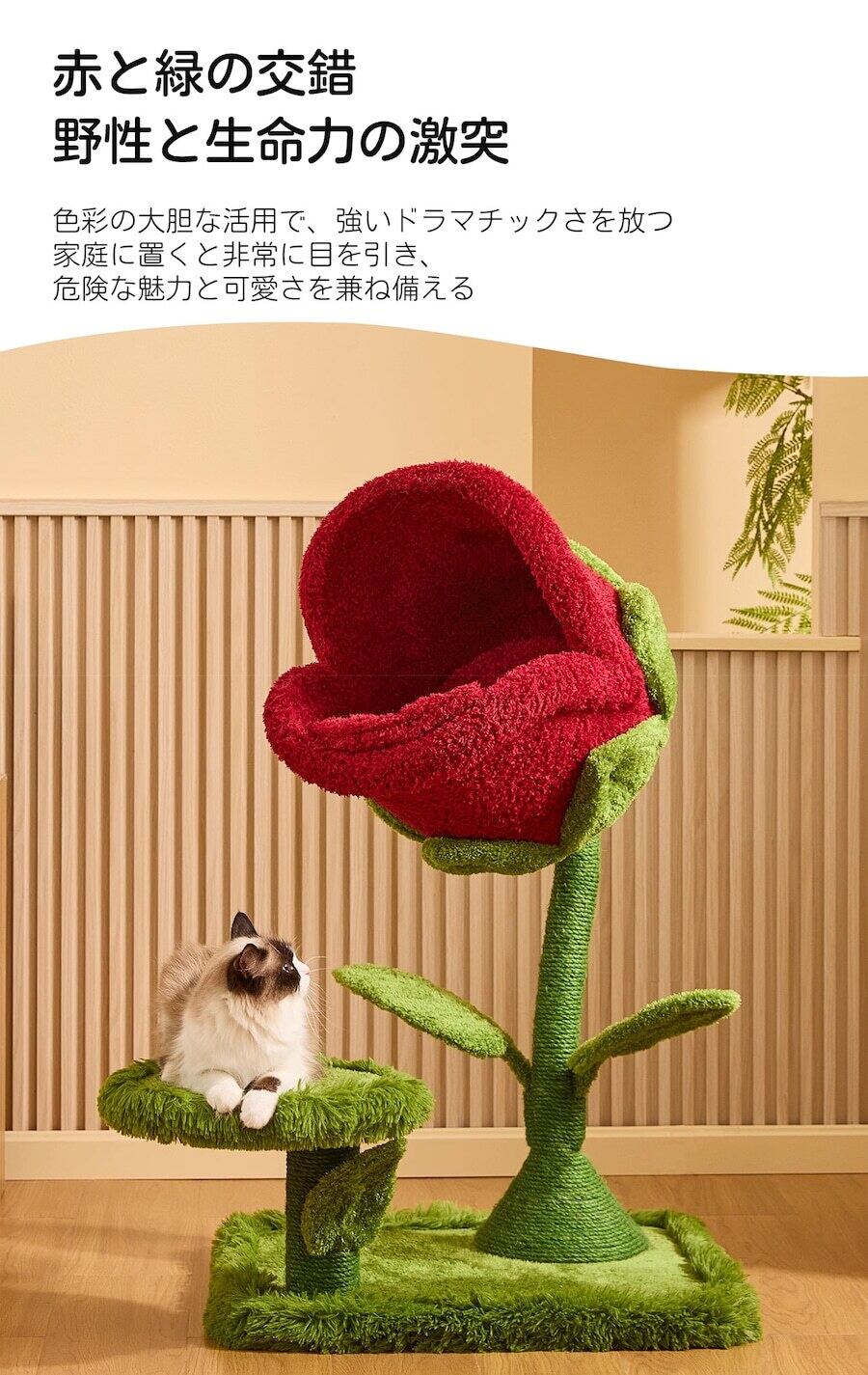 伝統的なキャットタワーの単調なデザインを打破し、植物の形状が家の中に溶け込みます。