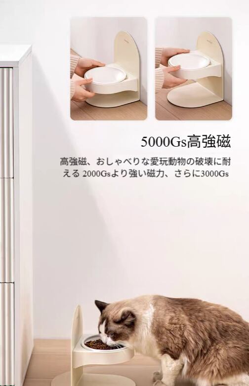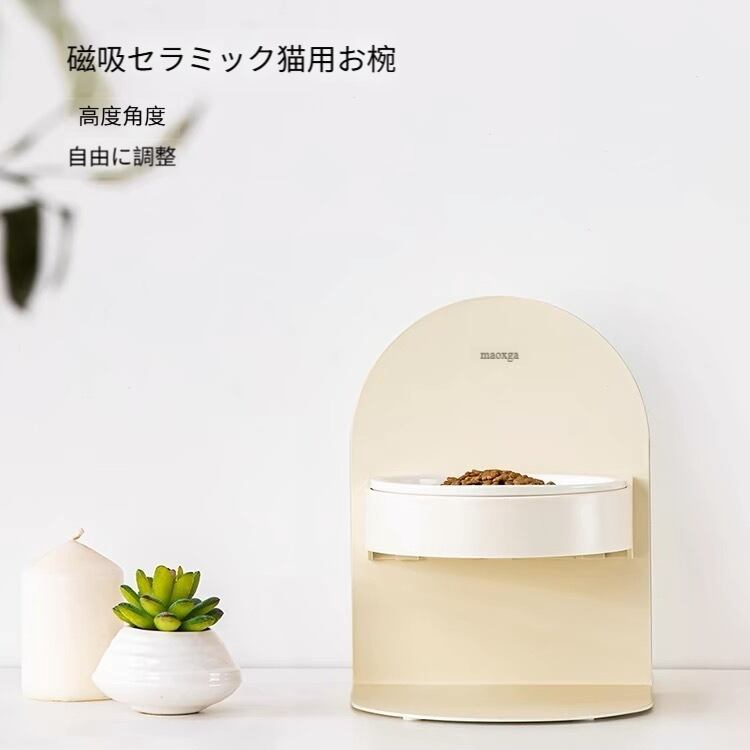 磁石吸着式セラミックキャットボウル、首への負担軽減で倒れにくく、ボウル用高さ調整スタンド付きペットキャットボウル、猫用飲み水ボウル