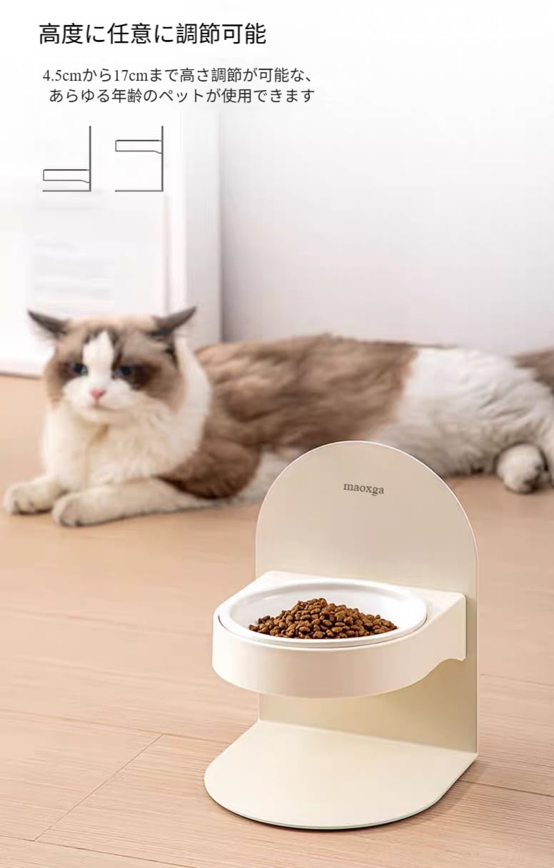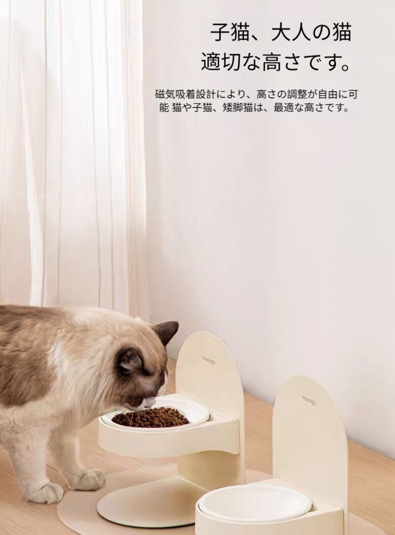このキャットボウルセットは、合理的な高さ調整スタンドを特別にデザインし、キャットボウルを猫が食事をしやすい高さに上げることができます。