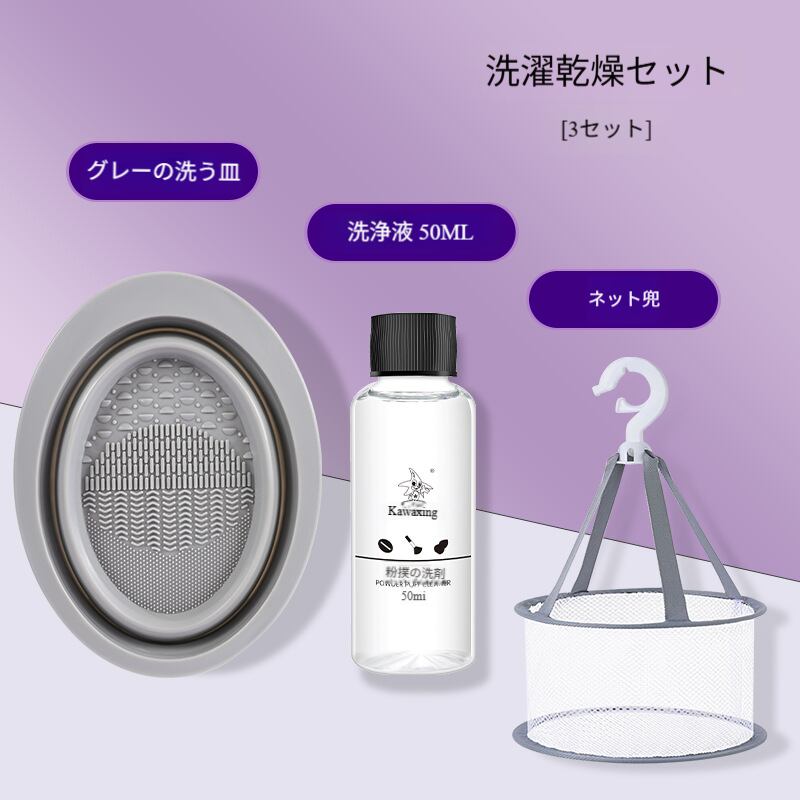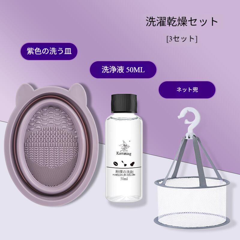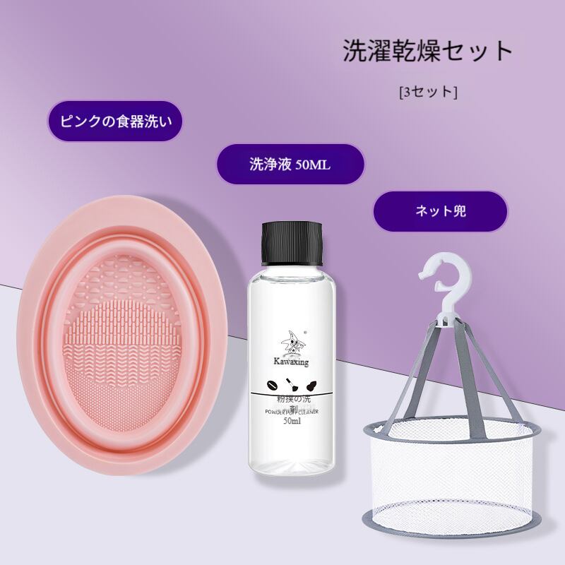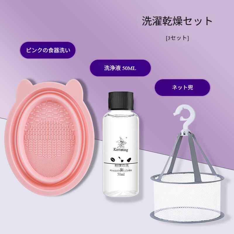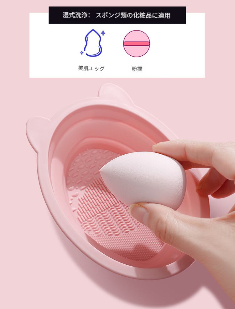 メイクブラシクリーナーセット/ビューティーブレンダー(美妆蛋)掃除グッズ/折りたたみシリコンブラシ洗いボウル/パフ洗浄液&工具