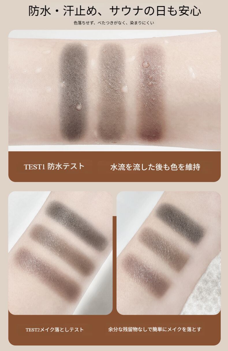 この生え際シャドウパウダーは優れた防水・抗汗性を持っています。特殊な防水配方を採用し、皮膚表面に保護膜を形成することで、水分や汗の侵食を効果的に防ぎます。