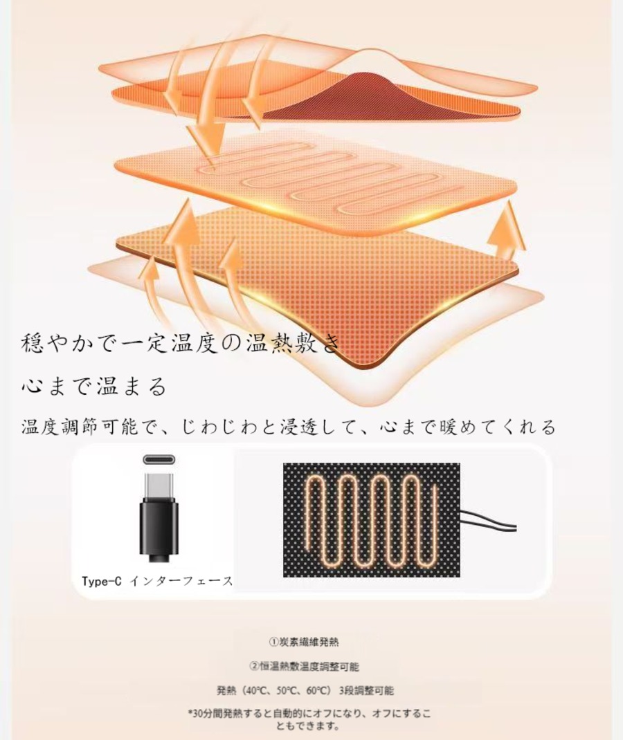発熱シートは安全認証済みで、過熱時に自動的に電源を切ります;