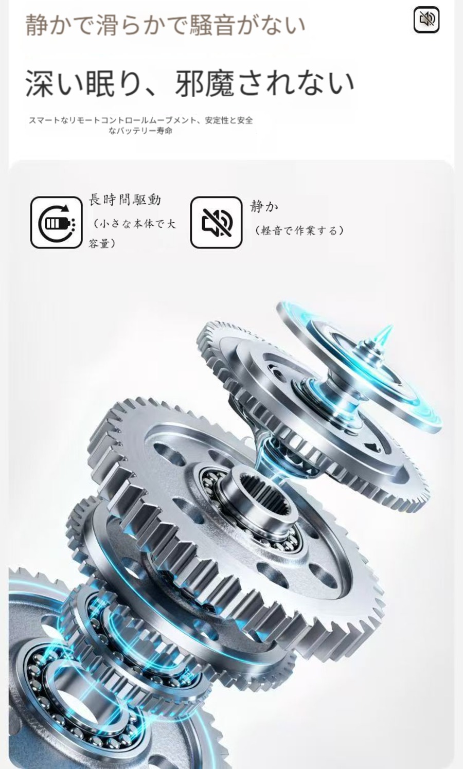 低騒音モーターで、静かに運転し眠りを妨げません;