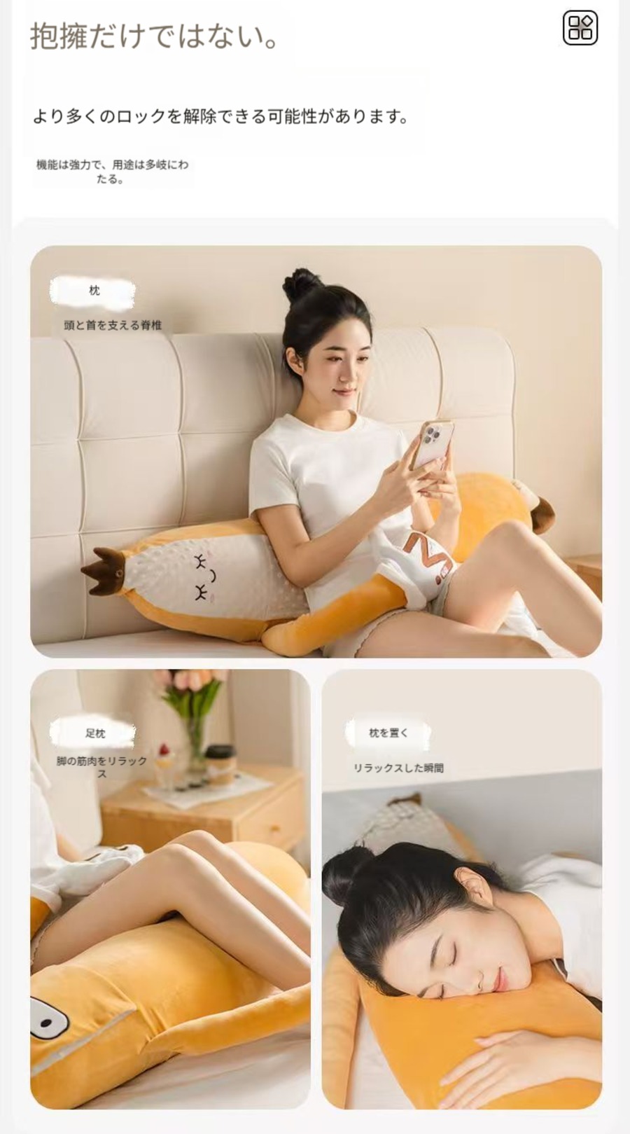 バナナキング 眠り誘う抱き枕 足を挟んで寝る抱き枕 横向き寝対応多機能眠り誘いグッズ