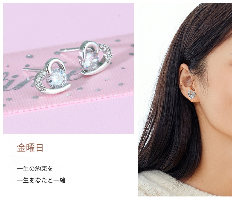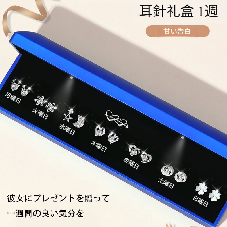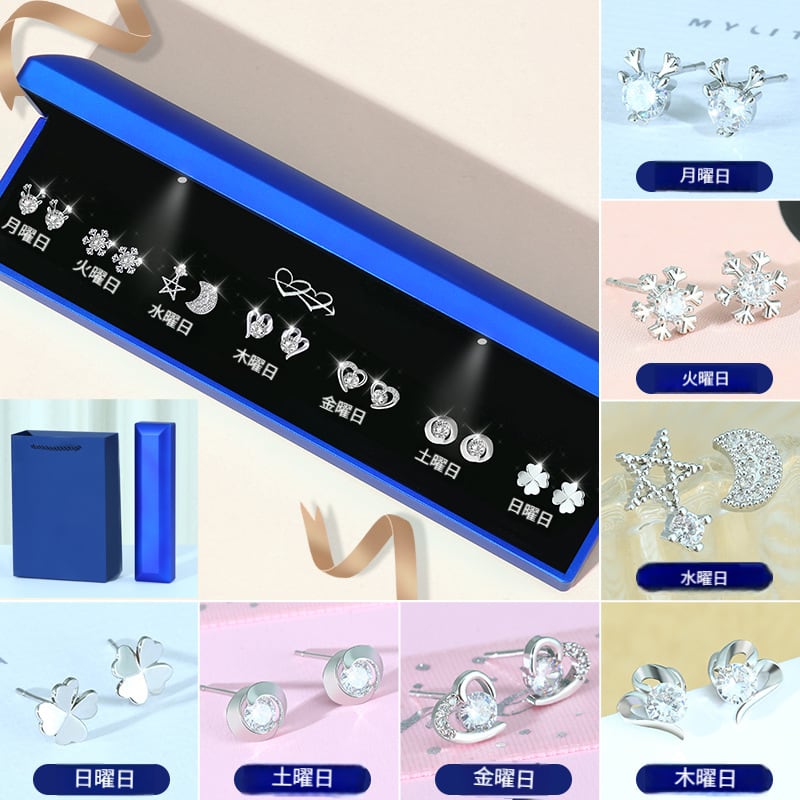 S925シルバーの1週間イヤリングギフトセット、バレンタインデーのプレゼントに彼女や妻へ実用的で意味のあるギフト