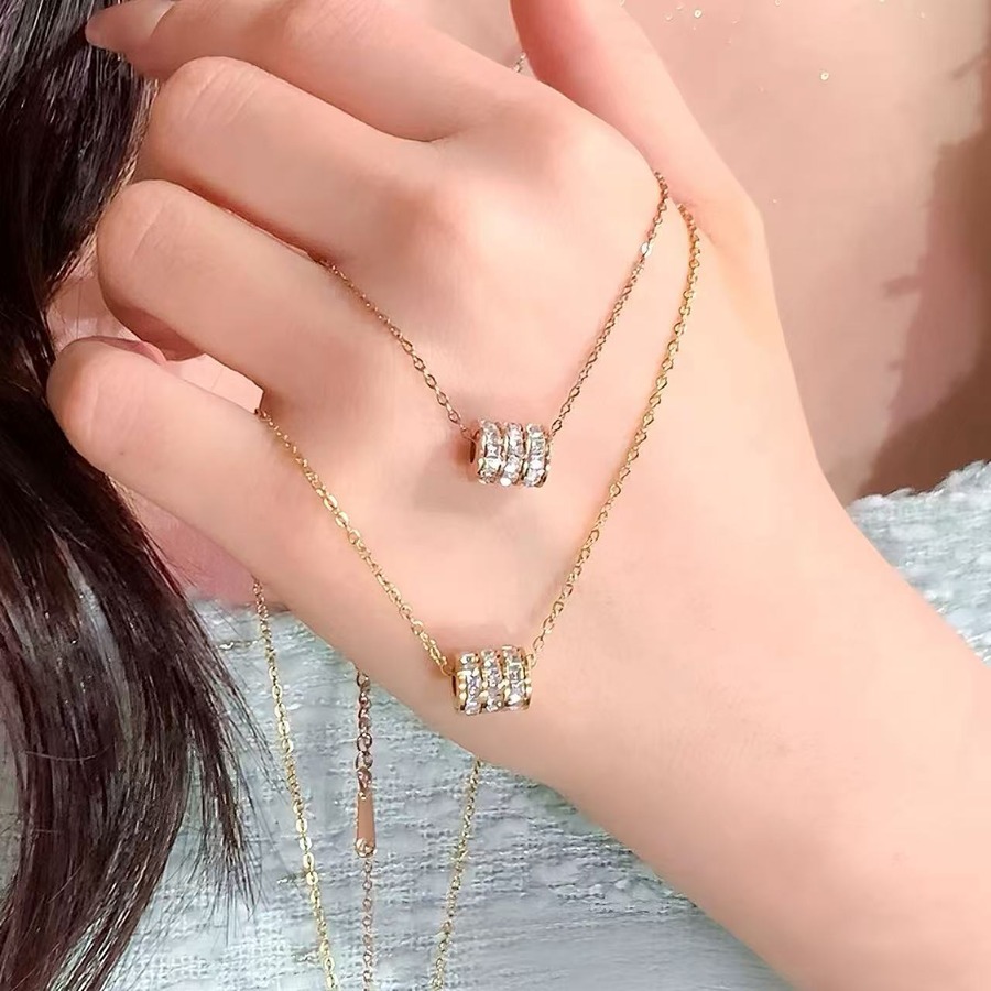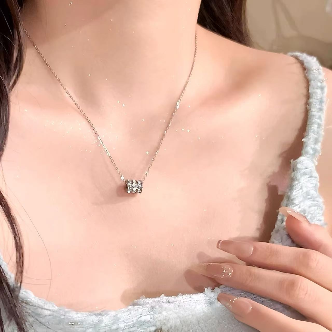 ジルコニア・チタンステールネックレス ライトラグジュアリー 小众で高級感のあるスリムペンダント